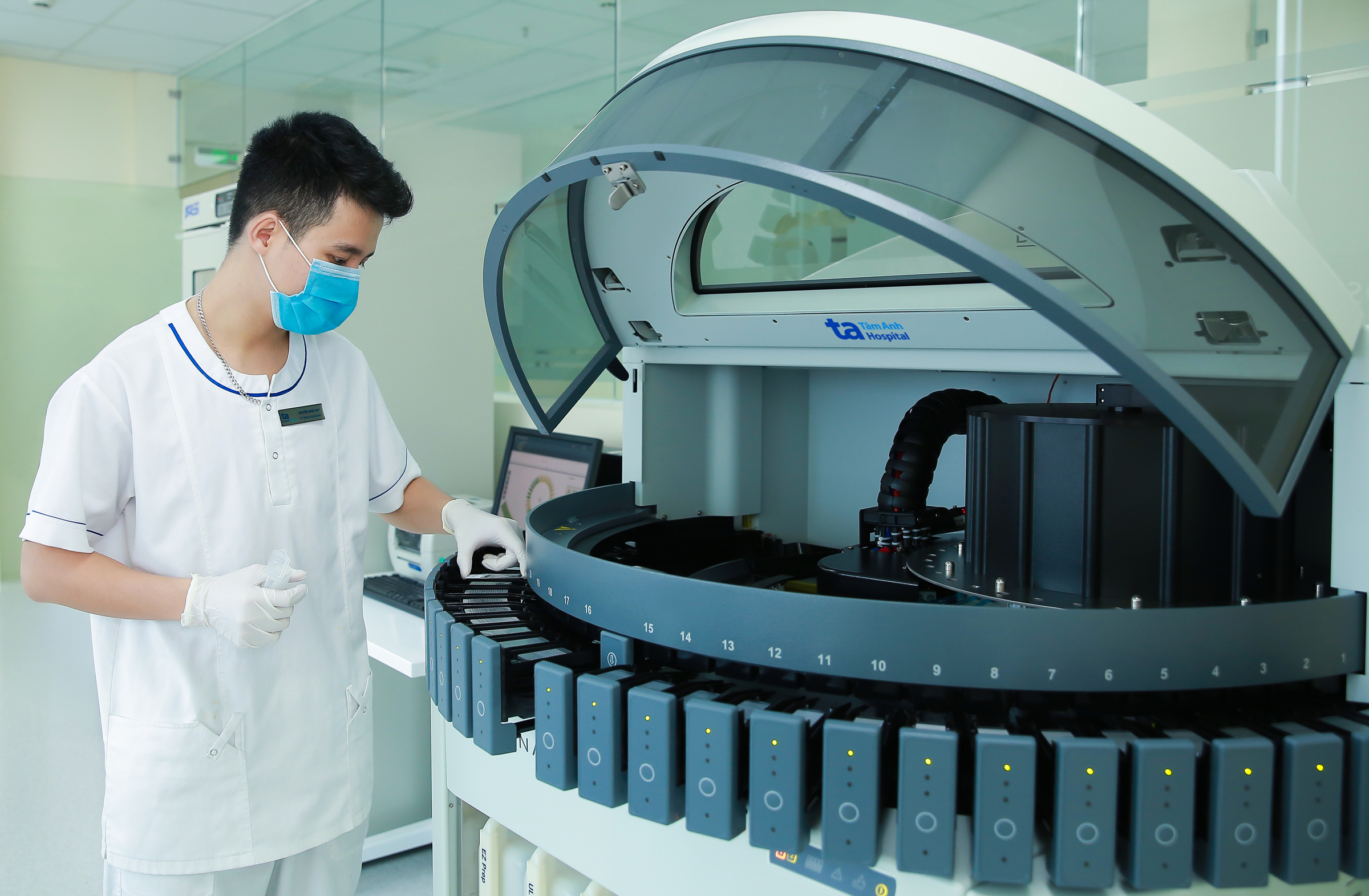 A technician operates an immunohistochemistry staining machine. *Photo: Tam Anh General Hospital*.