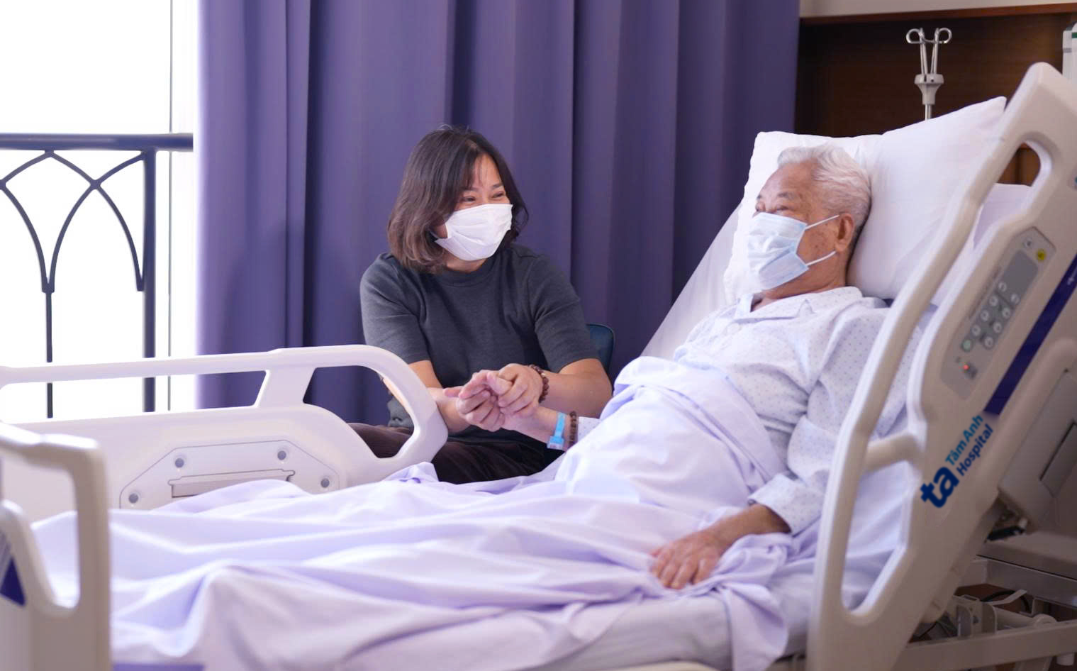 Family members encouraging Mr. Van during treatment. Photo: Tam Anh General Hospital |