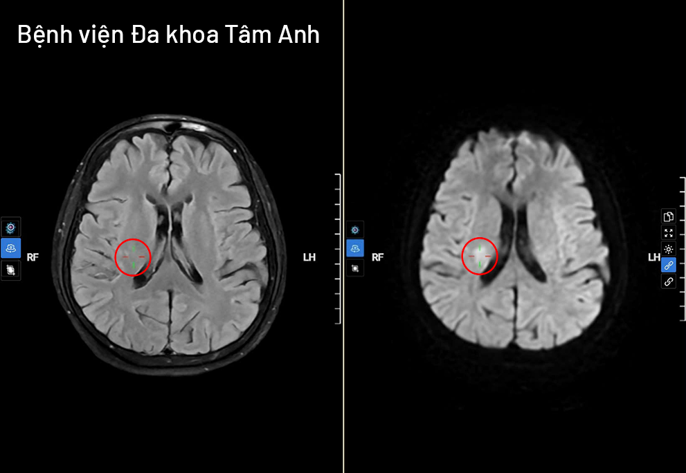 MRI images identifying the location of the acute cerebral infarction in the right cerebral hemisphere. Photo: Tam Anh General Hospital |