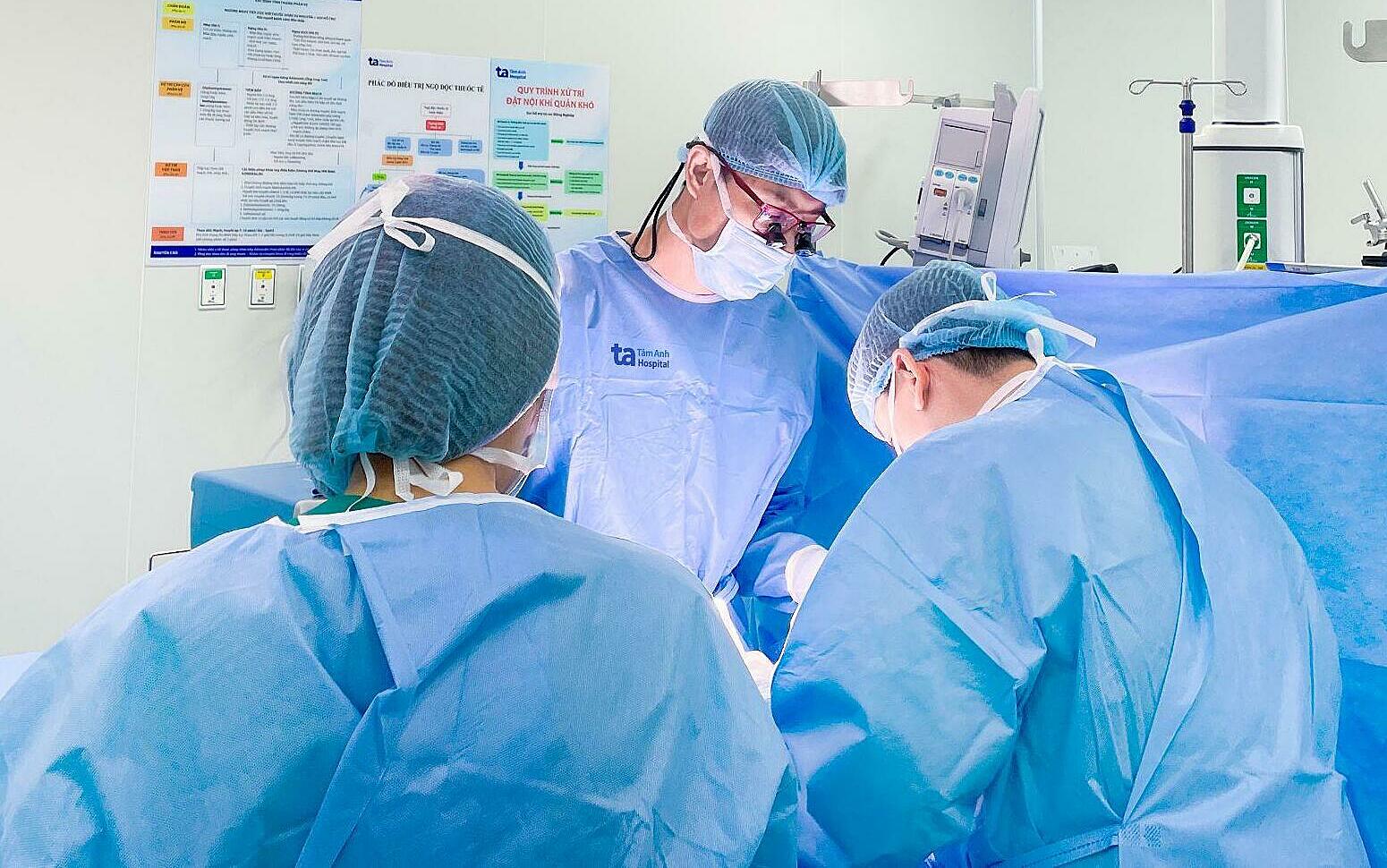 Dr. Vu (center) performing surgery on a child injured in a fall. Photo: Tam Anh General Hospital