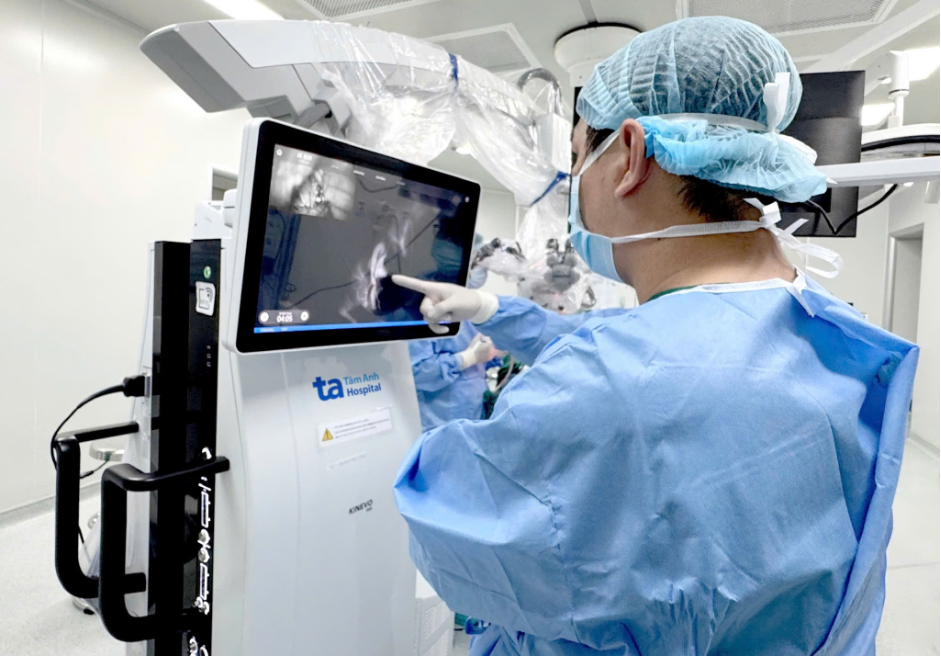 Following a multidisciplinary consultation, surgeons decided to perform an aneurysm clipping procedure on Mr. Minh. They utilized an AI-integrated microsurgical microscope system with 3D fluorescence imaging, allowing real-time blood flow monitoring during the operation.