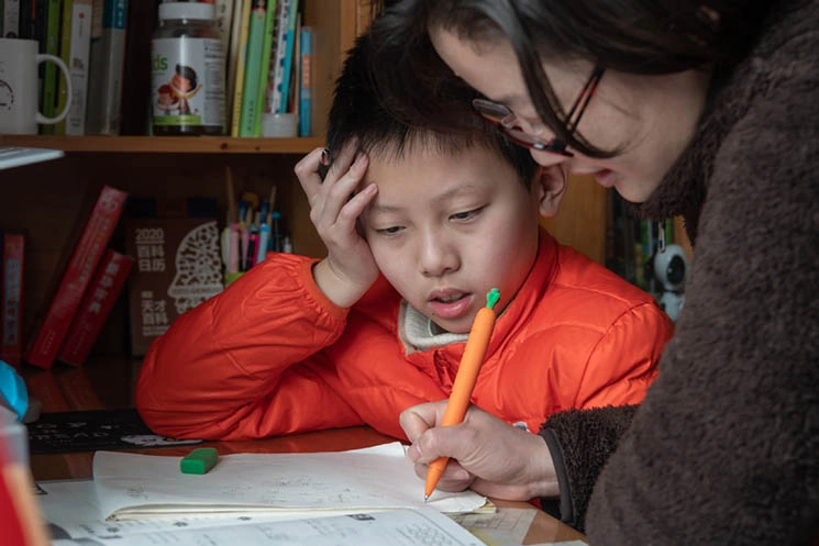 A parent tutoring a child at home in Shanghai, China, 3/2021. Illustration: China Daily |