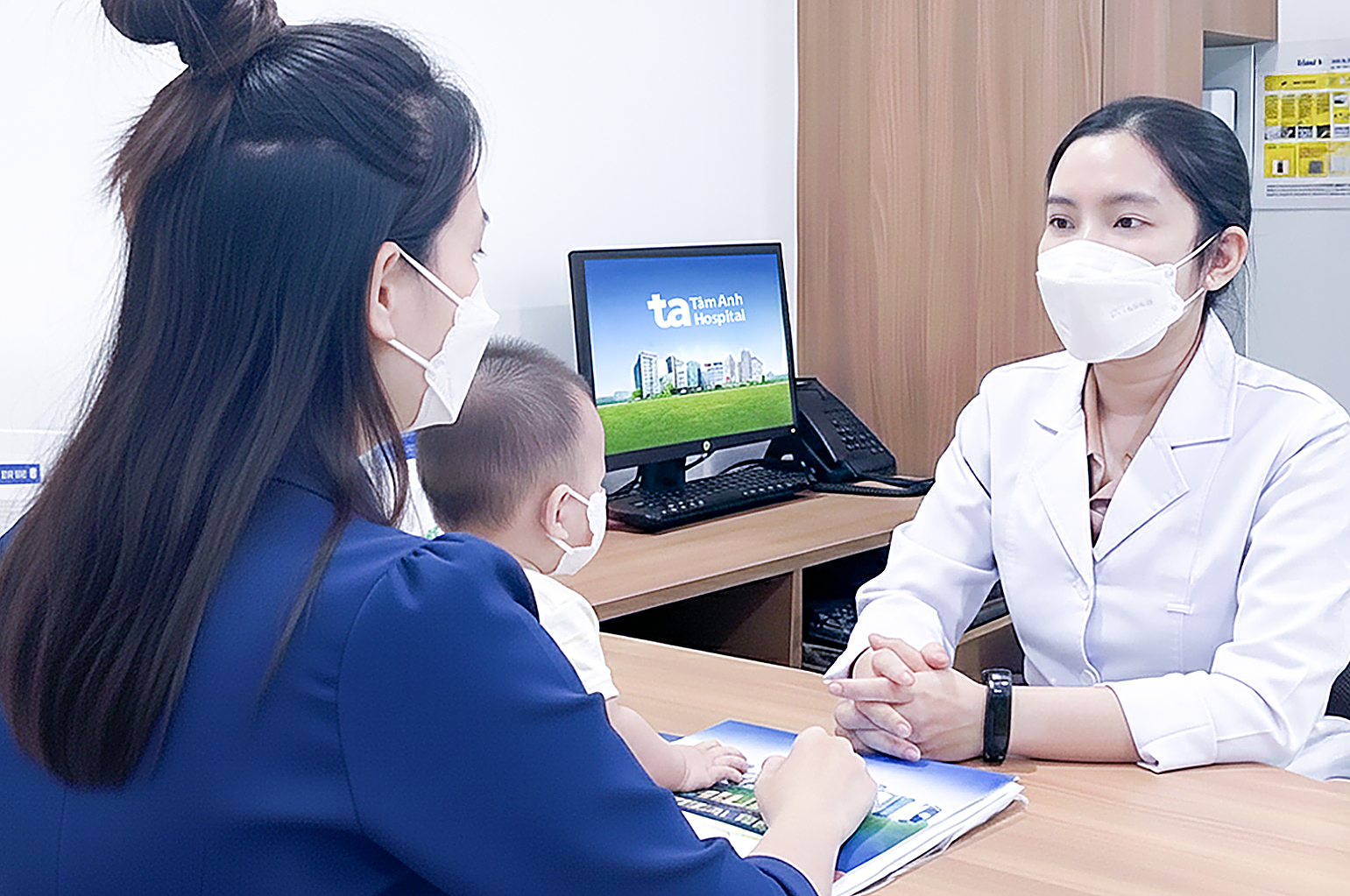 Doctor Thu advises a mother on her child's skin condition. Illustration: *Tam Anh General Hospital*. |