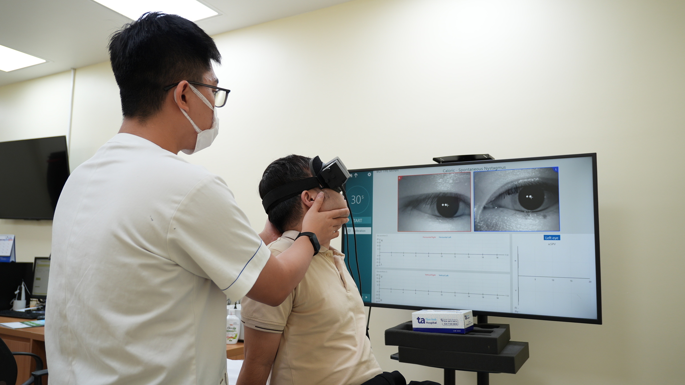 Patients undergo vestibular function testing using videonystagmography (VNG) technology to diagnose Meniere's disease. *Photo: Tam Anh General Hospital* |