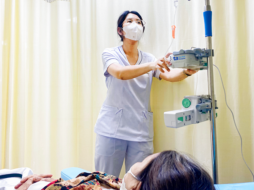 An oncology nurse monitors Lien's IV treatment. Photo: *Tam Anh General Hospital* |