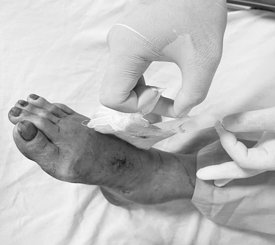 The wound on the patient's foot from the cobra bite. *Photo: Hospital provided*