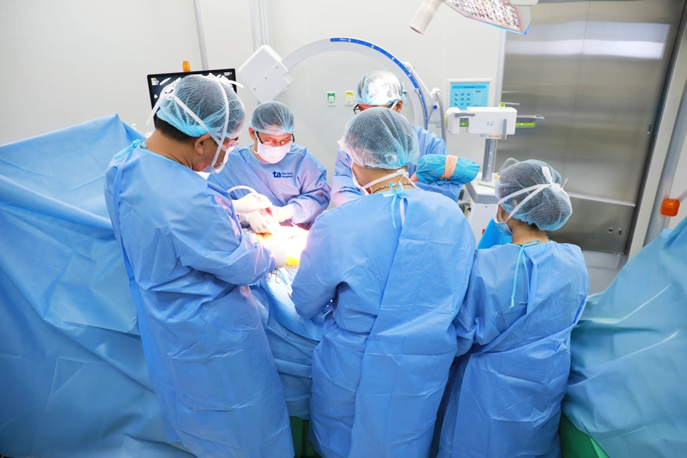 Doctor On (second from left) during a hip replacement surgery. Photo: Tam Anh General Hospital |