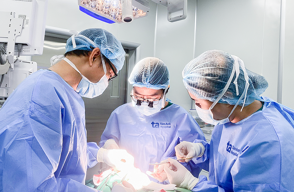 Medical team performing thyroglossal duct cyst surgery on Mr. My. *Photo: Tam Anh General Hospital* |
