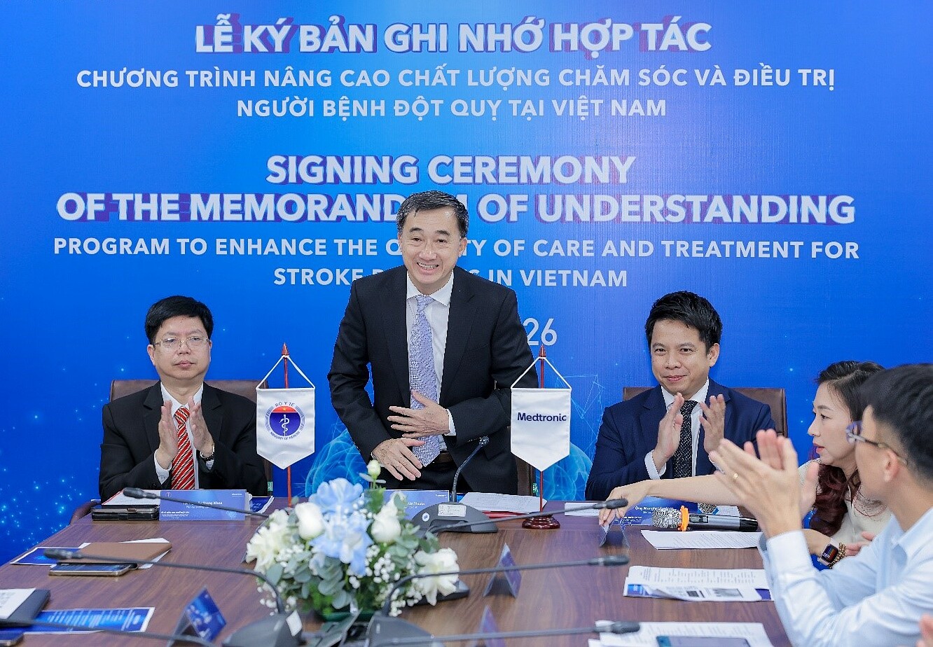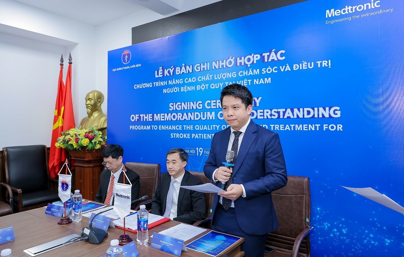 Mongkol Sankum, General Director of Medtronic Vietnam, Cambodia, Myanmar, and Laos, stated that the signing ceremony is a cooperation milestone between Medtronic and the Department of Medical Examination and Treatment Administration and an important step towards a common goal: improving the quality of stroke care and treatment for patients. He added that this MoU reflects Medtronic's commitment to partner with the government and hospitals to enhance treatment capacity, bringing medical advancements and modern technology closer to patients nationwide. "We expect that enhanced professional training, standardized care models, and increased community awareness will create meaningful long-term changes – not only improving treatment quality but also contributing to building an equitable, effective, and sustainable stroke care system", Mongkol Sankum said.