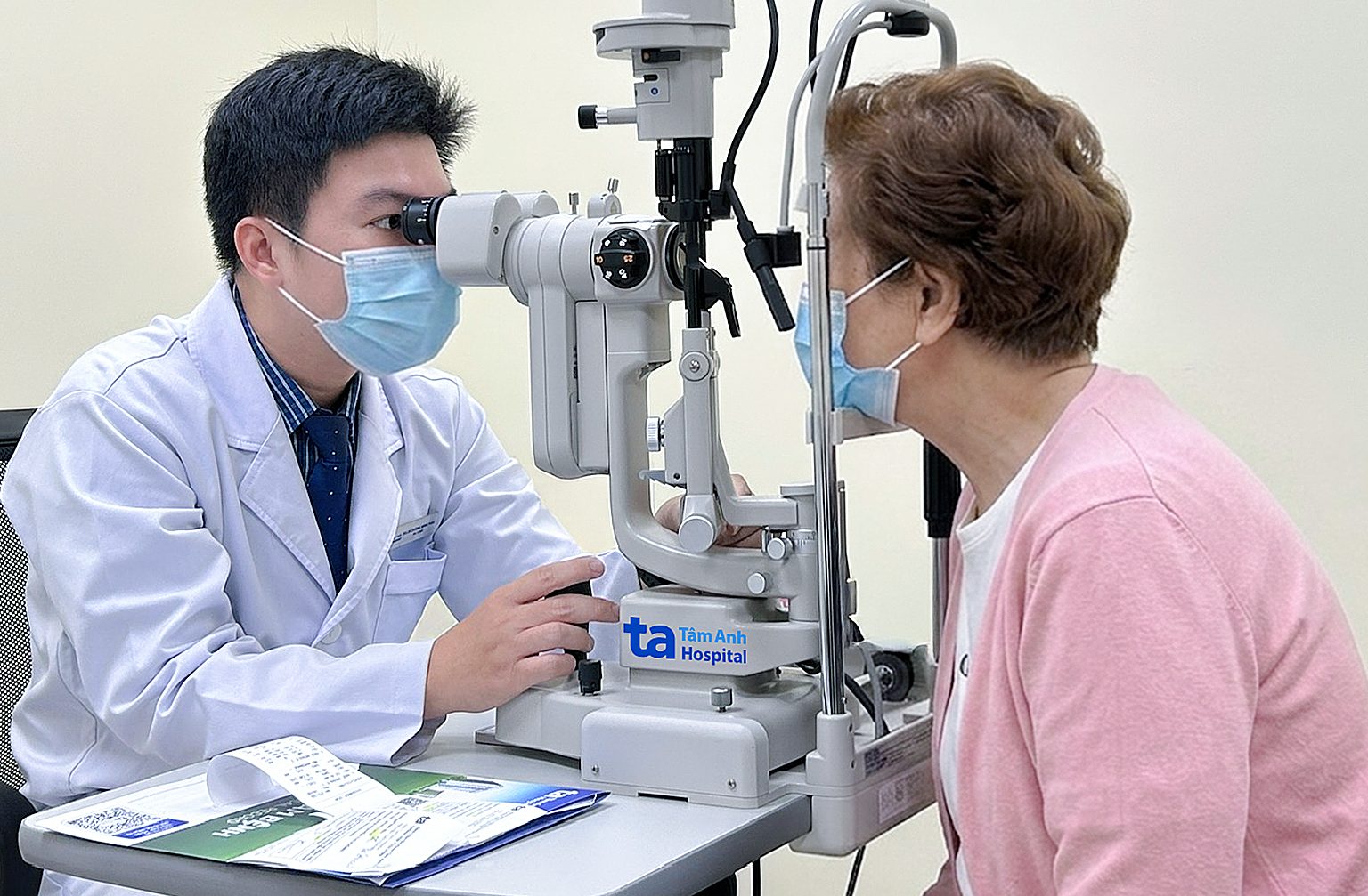 Dr. Phuc examines Ms. Oanh's eye. Photo: Tam Anh General Hospital