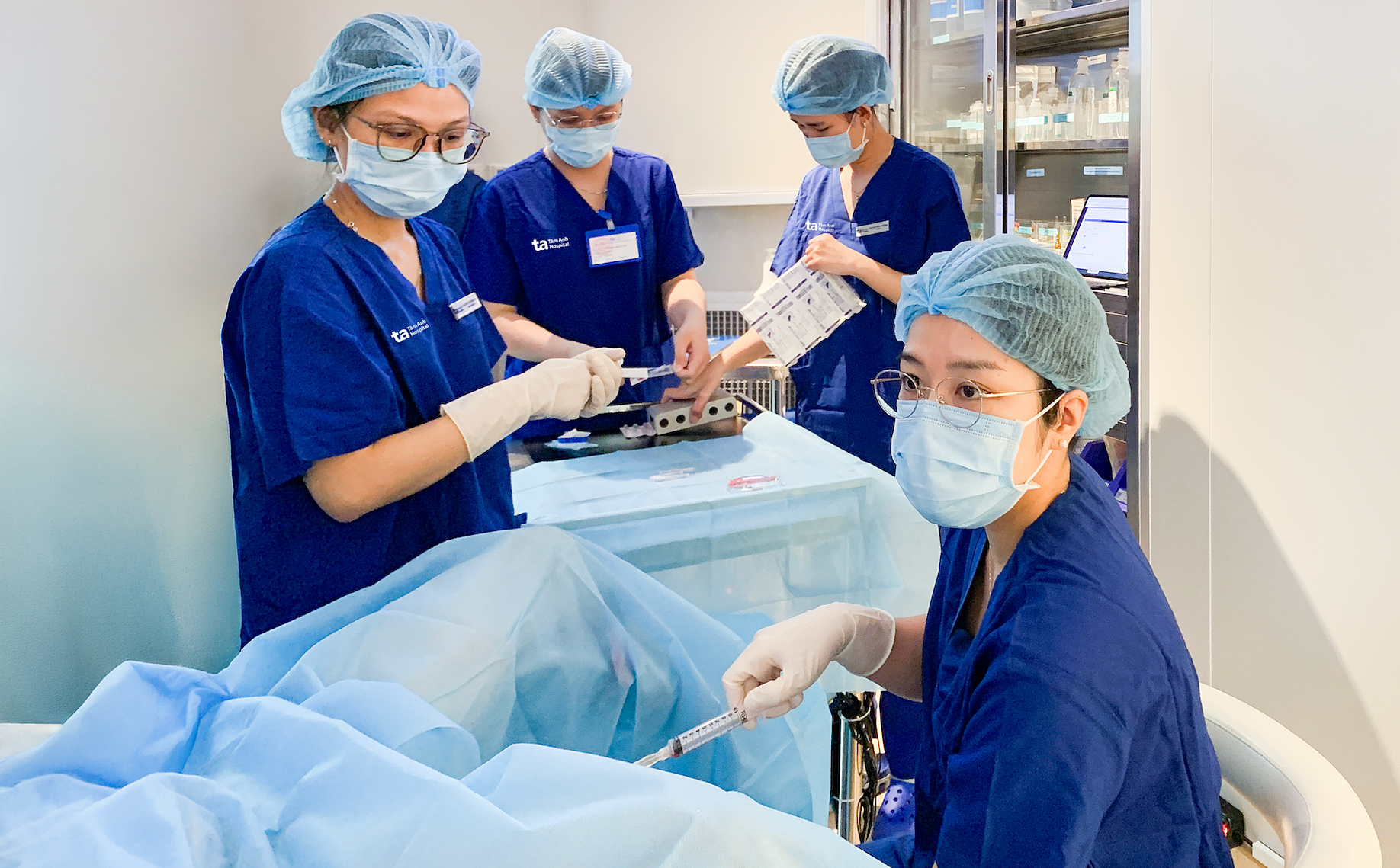 Doctor Van Anh (foreground) performing egg retrieval for a patient. *Photo: Tam Anh General Hospital - District 8*