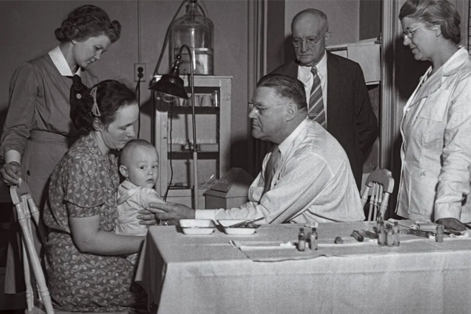 A baby receiving a whooping cough vaccine in the U.S., 1940. Photo: Grand Rapids History Center, Grand Rapids Public Library