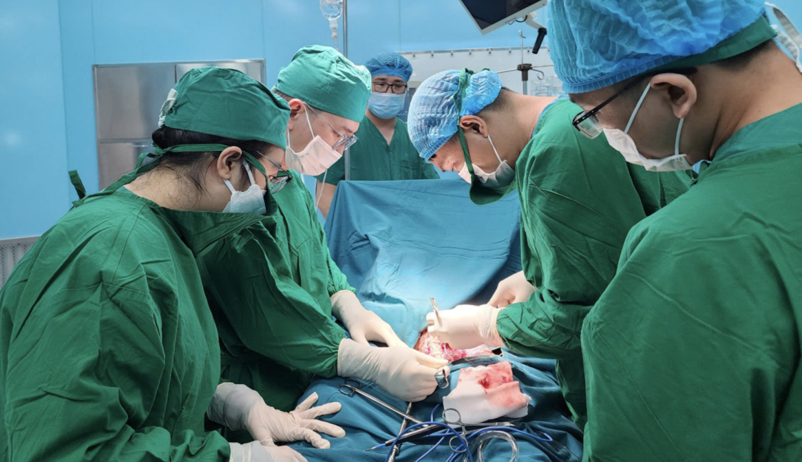 Emergency medical staff quickly stabilized the patient and prepared him for surgery. Emergency doctors immediately resuscitated him, stabilizing his respiration and circulation before taking him to the operating room. The surgery involved an urgent collaboration between the local medical team and four specialist doctors on rotation: doctor Nguyen Quoc Thang (Orthopedic and Traumatology Hospital), Bui Minh Tin (Binh Dan Hospital), Phan Anh Vu (City Children's Hospital), and Le Sy Tien (Lanh Binh Thang Hospital).