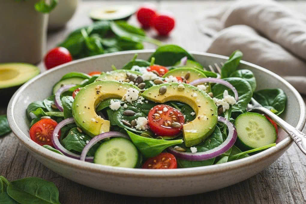 Avocado is rich in monounsaturated fats, fiber, and vitamins E, K, and B-group vitamins. It contains almost no sugar and few carbohydrates, contributing to stable blood sugar levels after meals. The healthy fats in avocados improve insulin sensitivity, while soluble fiber helps slow sugar absorption into the bloodstream. A diet rich in monounsaturated fats can reduce the risk of pre-diabetes progressing to type two diabetes.