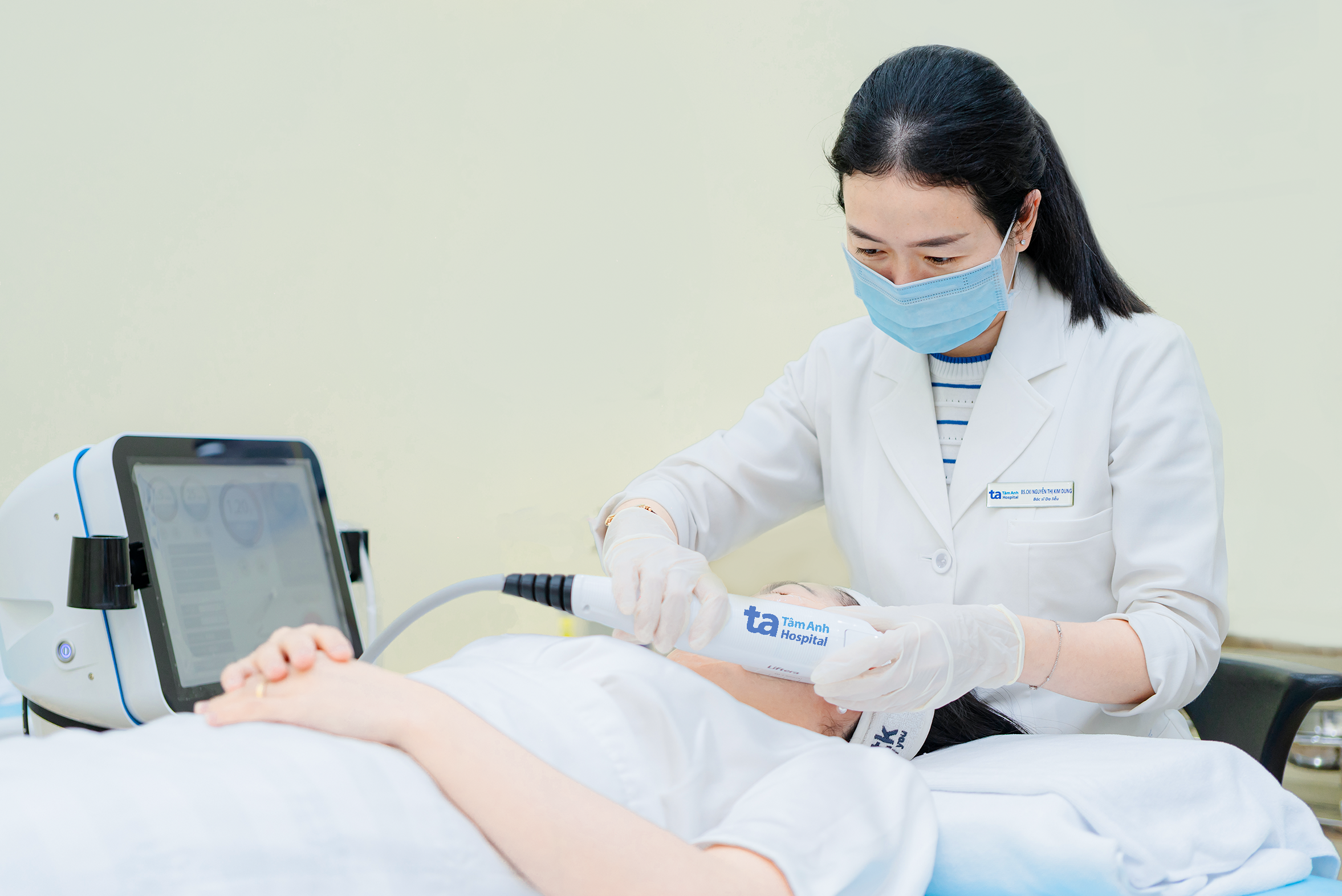 Doctor Dung uses HIFU technology to treat a patient's sagging skin. Photo illustration: Tam Anh General Clinic, District 7. *italic* |
