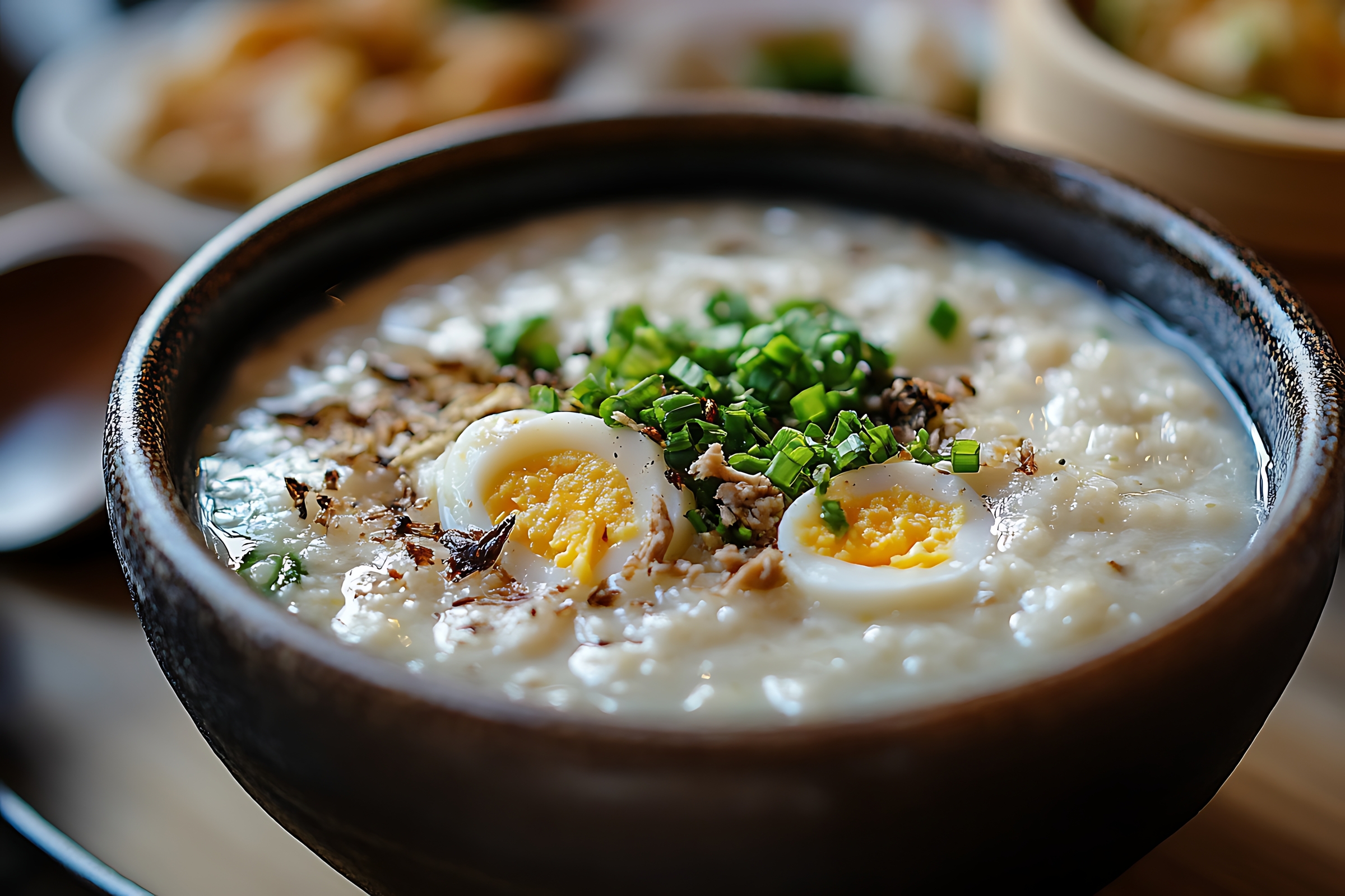 Onion porridge combines ingredients like rice, onions, scallions, ginger, and perilla leaves. Many people eat it when they have a cold or the flu, or after being in the rain. According to Traditional Medicine, onions, ginger, and perilla leaves contain essential oils with antibacterial properties. They are also rich in vitamins, fiber, and antioxidants, which help warm the body, induce sweating, relieve nasal congestion, and soothe sore throats. These ingredients, combined with white rice and cooked into a thin porridge, are easy to digest for those who are sick or feeling unwell. Therefore, this dish is used as a supportive remedy for colds and the flu, along with rest, adequate hydration, and medication as directed by a doctor.
