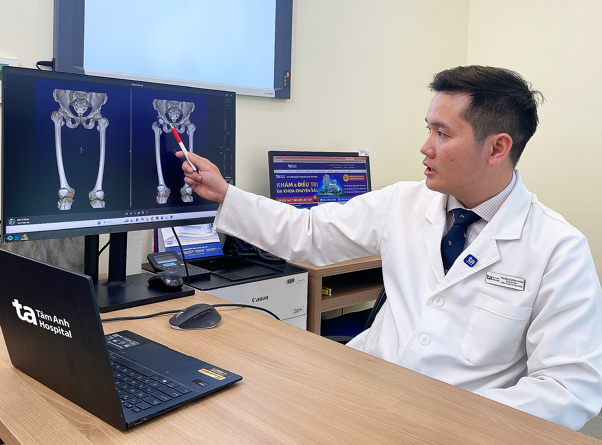 Doctor Khoa explains the patient's joint function. Photo: Tam Anh General Hospital |
