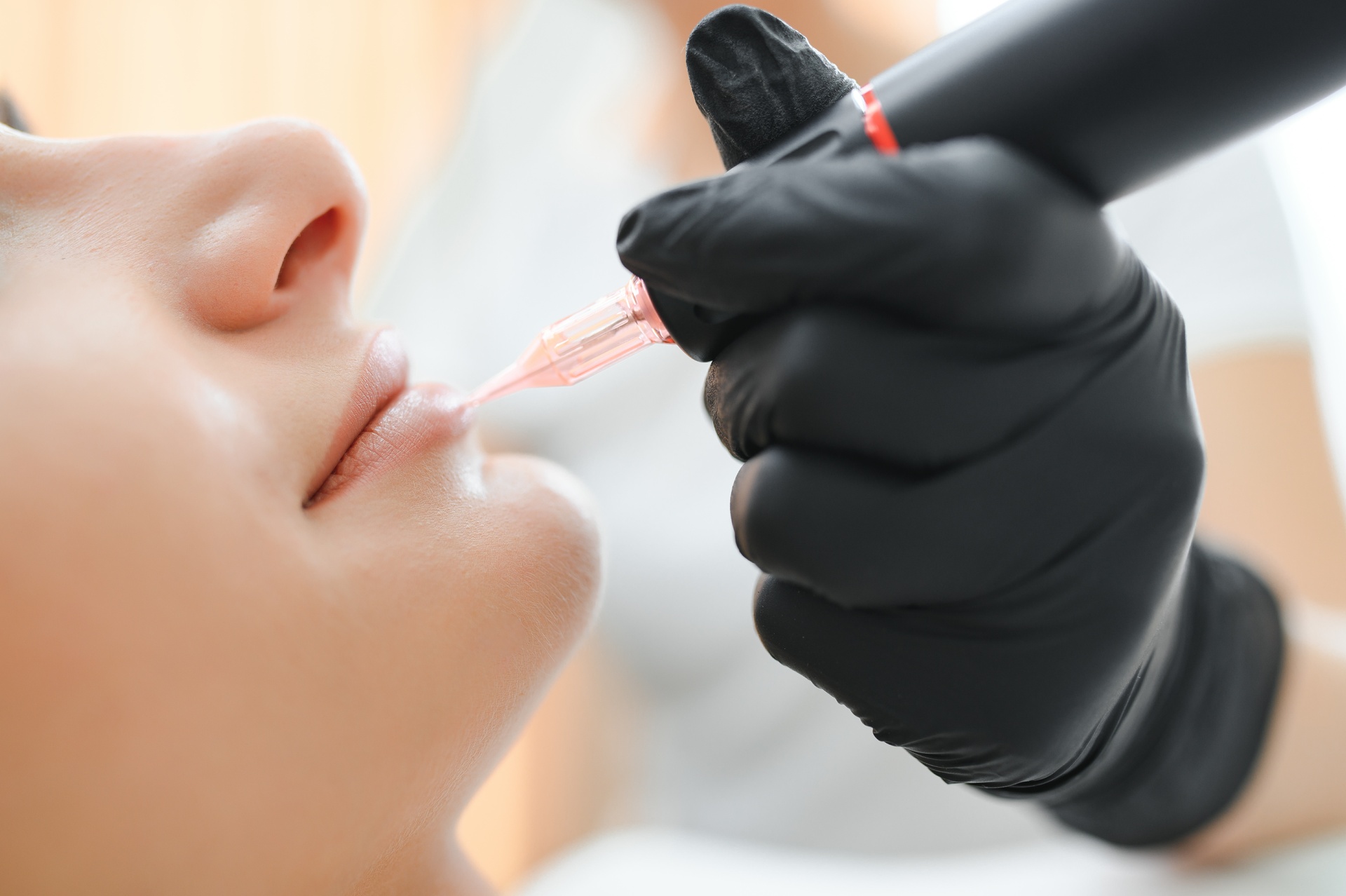 Lip tattooing procedures can cause disease transmission if tools are not properly sterilized; attention to hygiene and prevention protocols is crucial. *Illustration: Vecteezy*