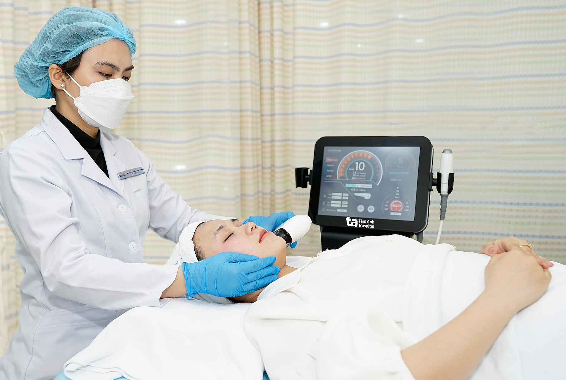 Doctor Tran uses HIFU focused ultrasound to improve aging, sagging skin. Illustration: Tam Anh General Hospital