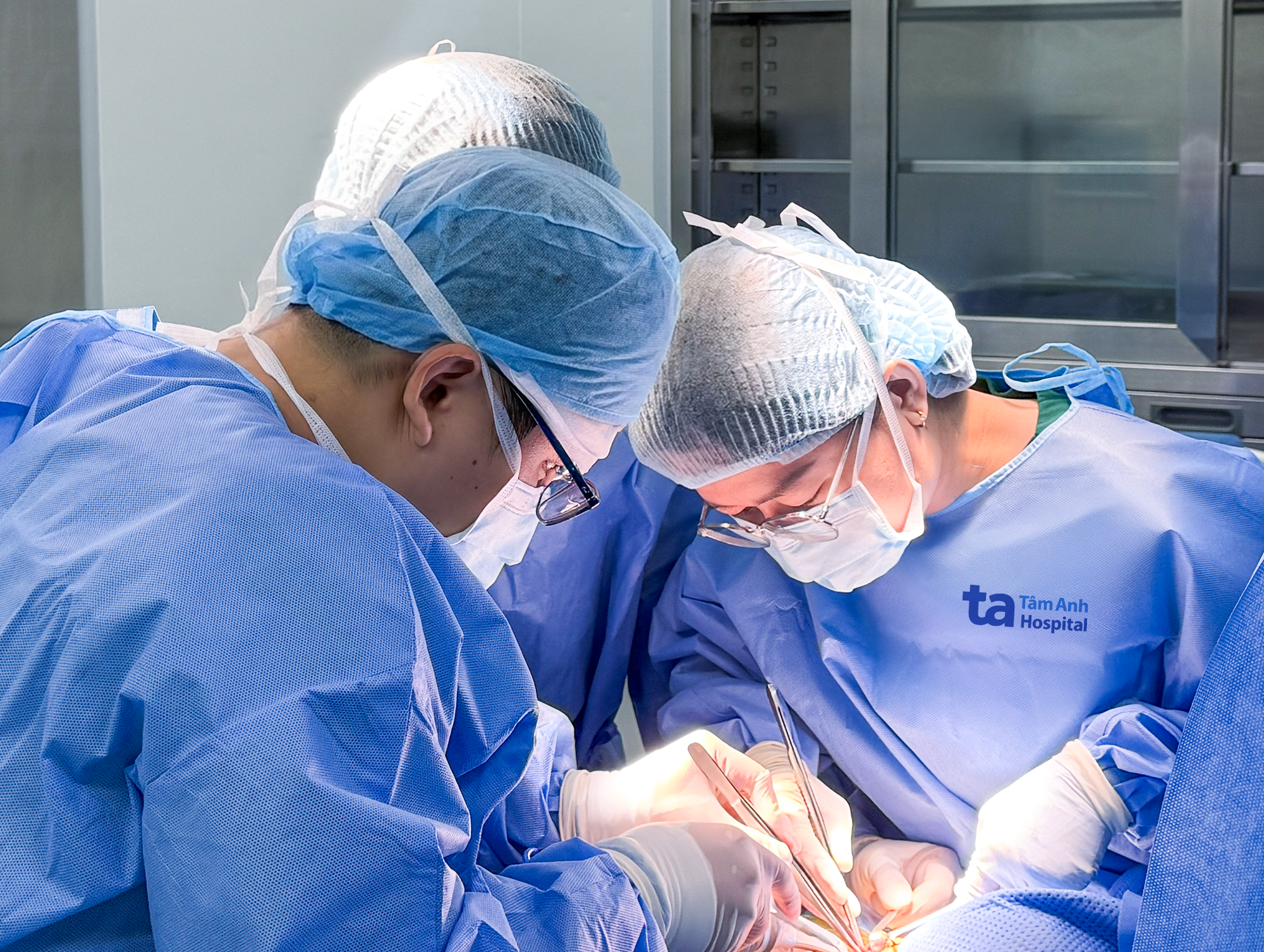 Doctor Hai (right) and the team perform radical thyroidectomy for a patient. Photo: Tam Anh General Hospital |