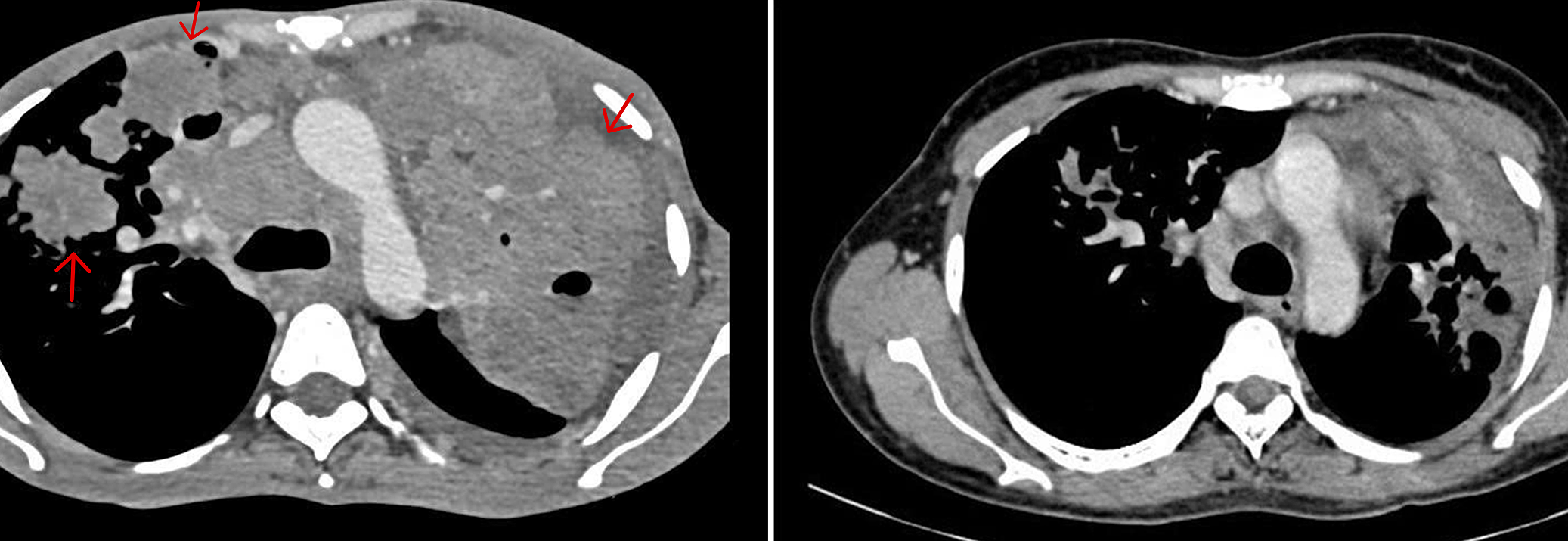 Phuong’s lung CT scan before treatment (left) and after six months (right). Photo: Hospital provided