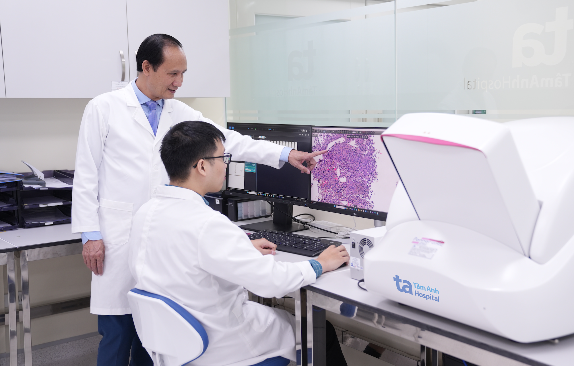 Associate Professor Dung reviews the histopathological and immunohistochemical test results. Photo: Tam Anh General Hospital |