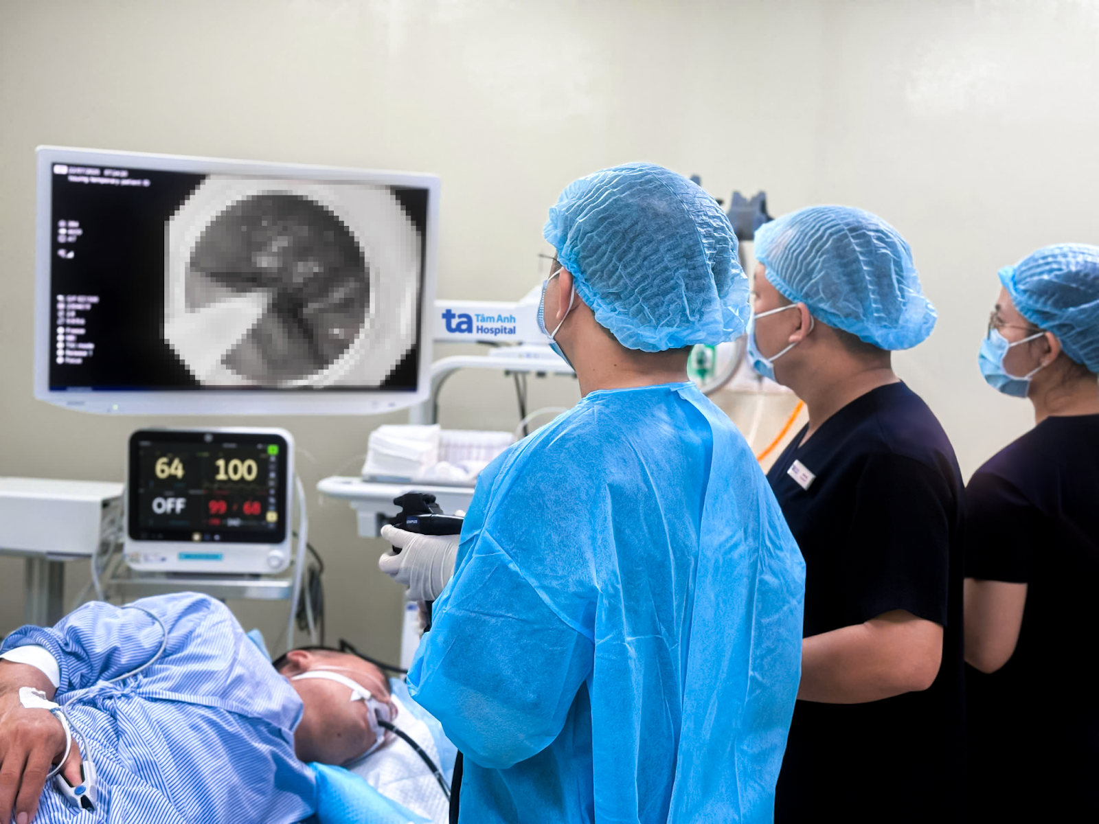 Doctor Binh performs endoscopic submucosal dissection on Tri. Photo: *Tam Anh General Hospital* |