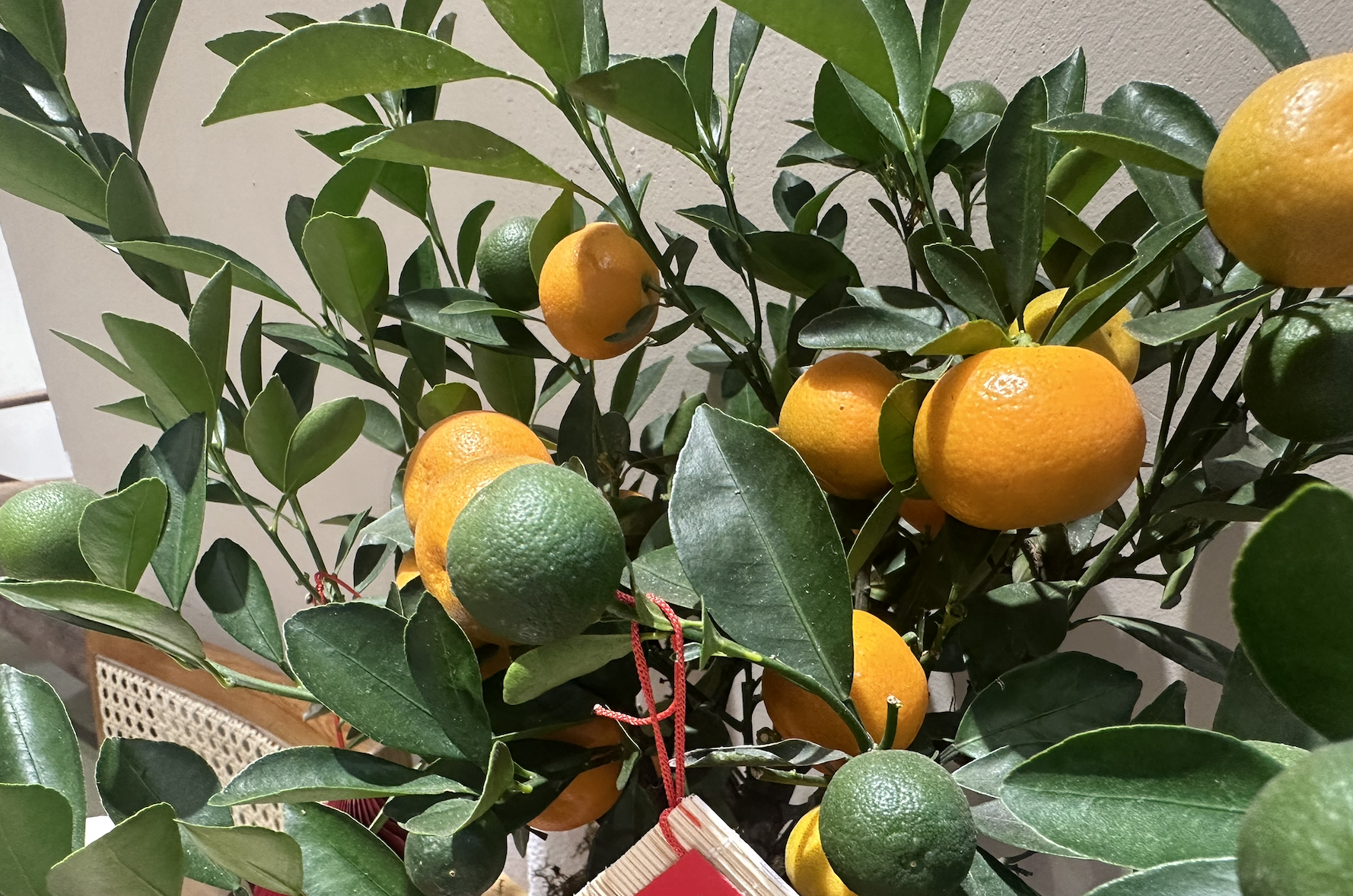 During the Tet holiday, families often buy ornamental kumquat trees for indoor decoration. These trees, laden with fruit, symbolize health, peace, longevity, good fortune, and family reunion in the new year.