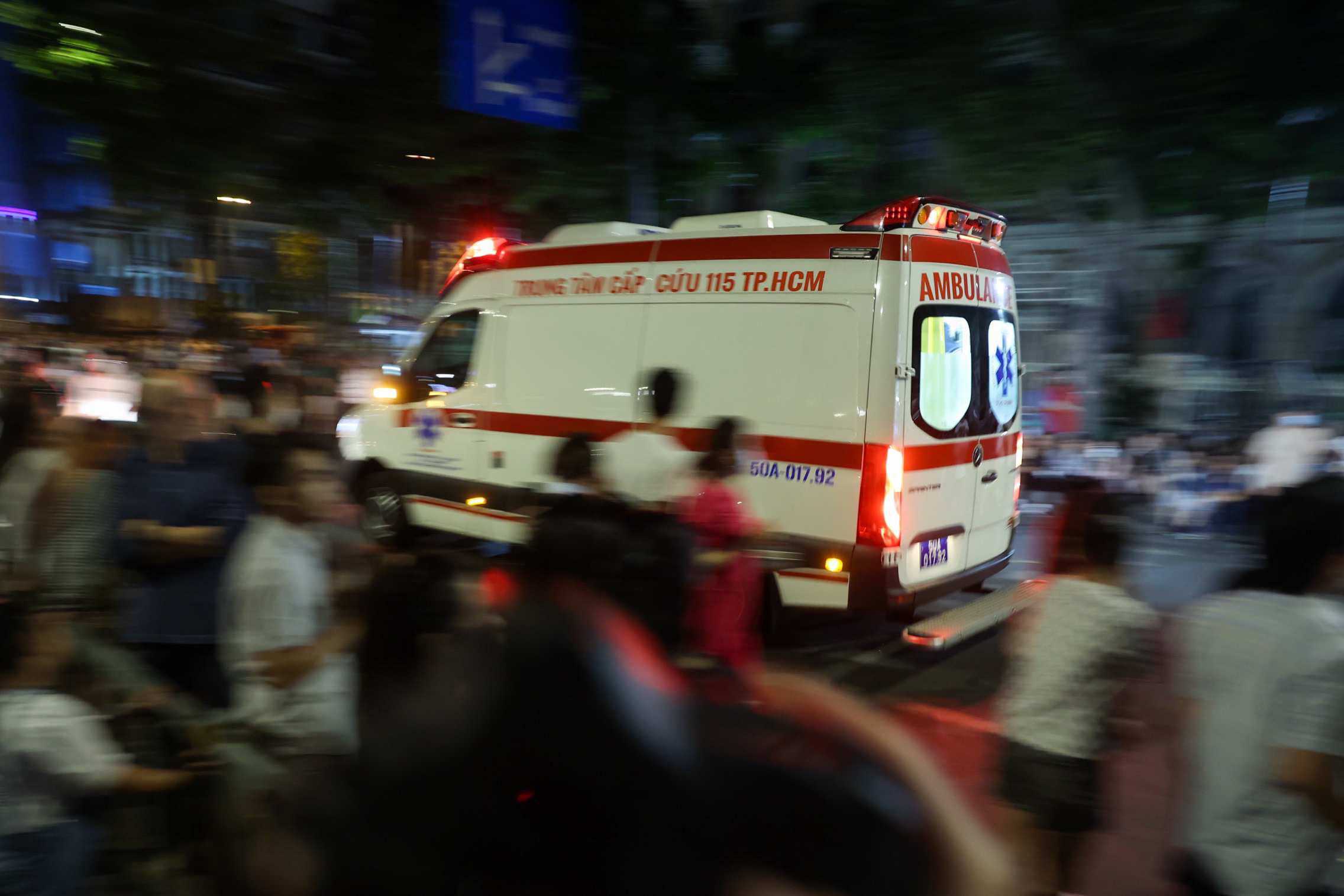 Ho Chi Minh City Emergency Center 115 ambulance navigating crowded streets. Photo: Quynh Tran