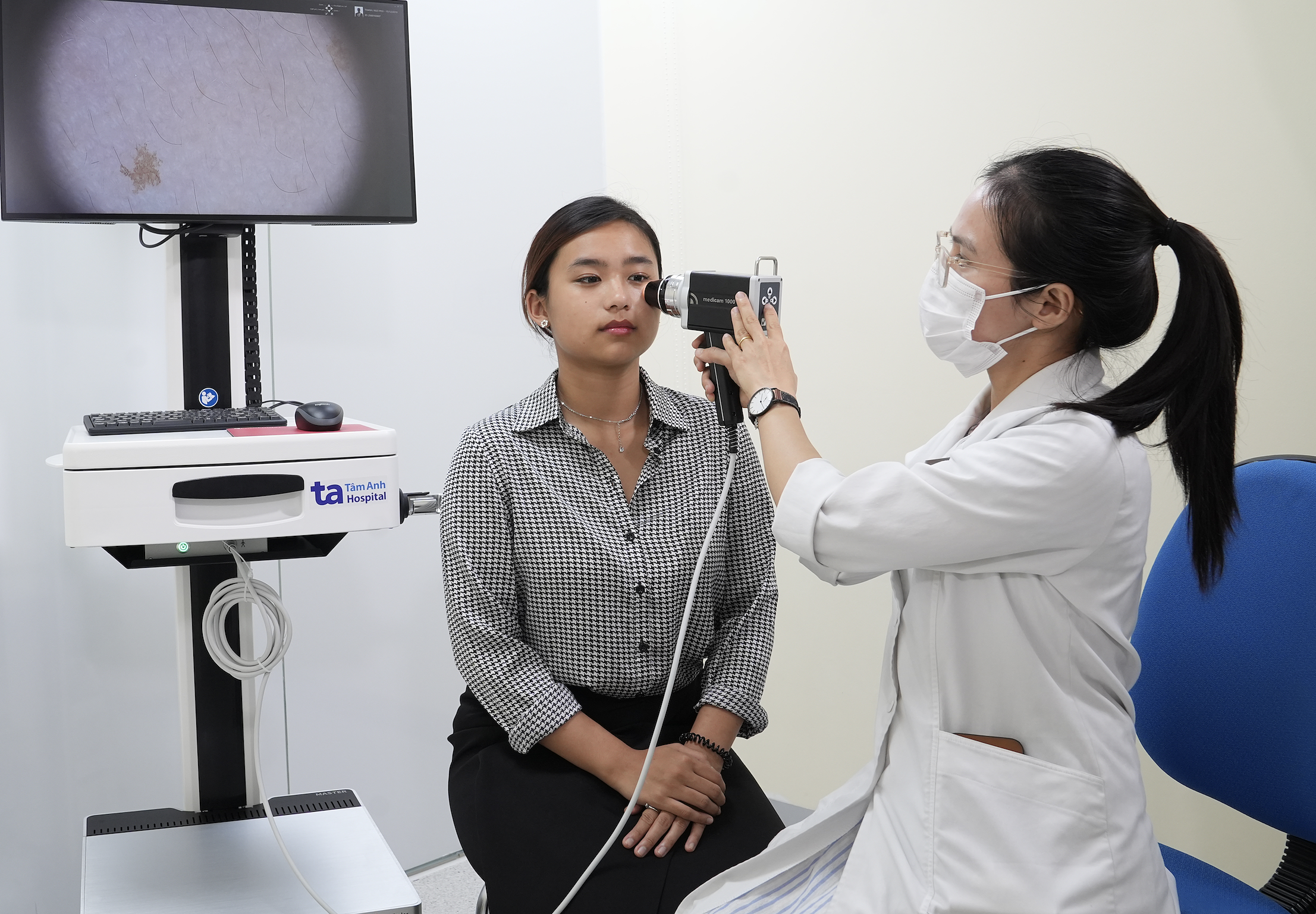 A dermatologist examines a woman. Photo: Tam Anh General Hospital |