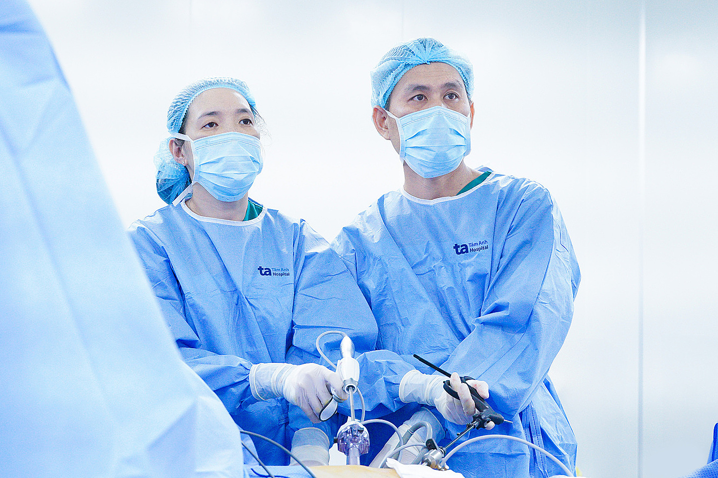 Doctor Lien and Doctor Duy performed laparoscopic surgery on Nam. *Photo: Tam Anh General Hospital* |