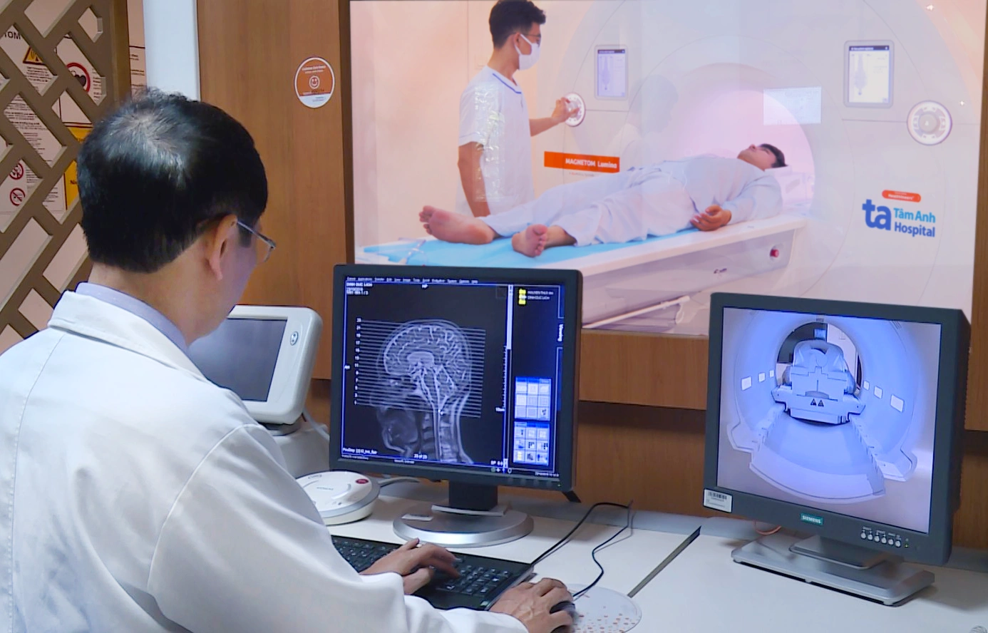 Magnetic resonance imaging (MRI) scan for a patient with frequent tinnitus and dizziness. Photo: Tam Anh General Hospital |