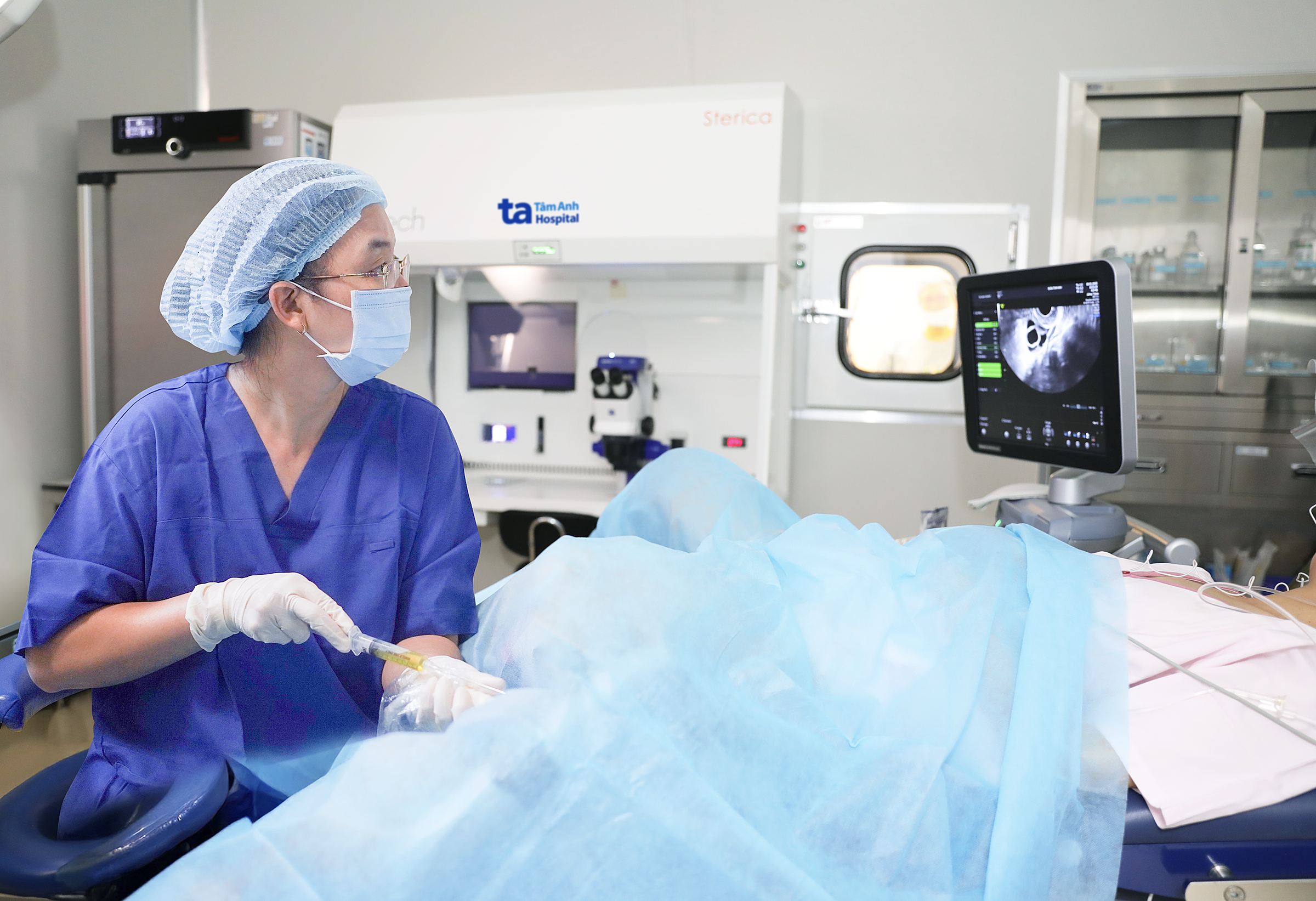 Dr. Nhu performs oocyte retrieval for a patient. Photo: Hoai Thuong