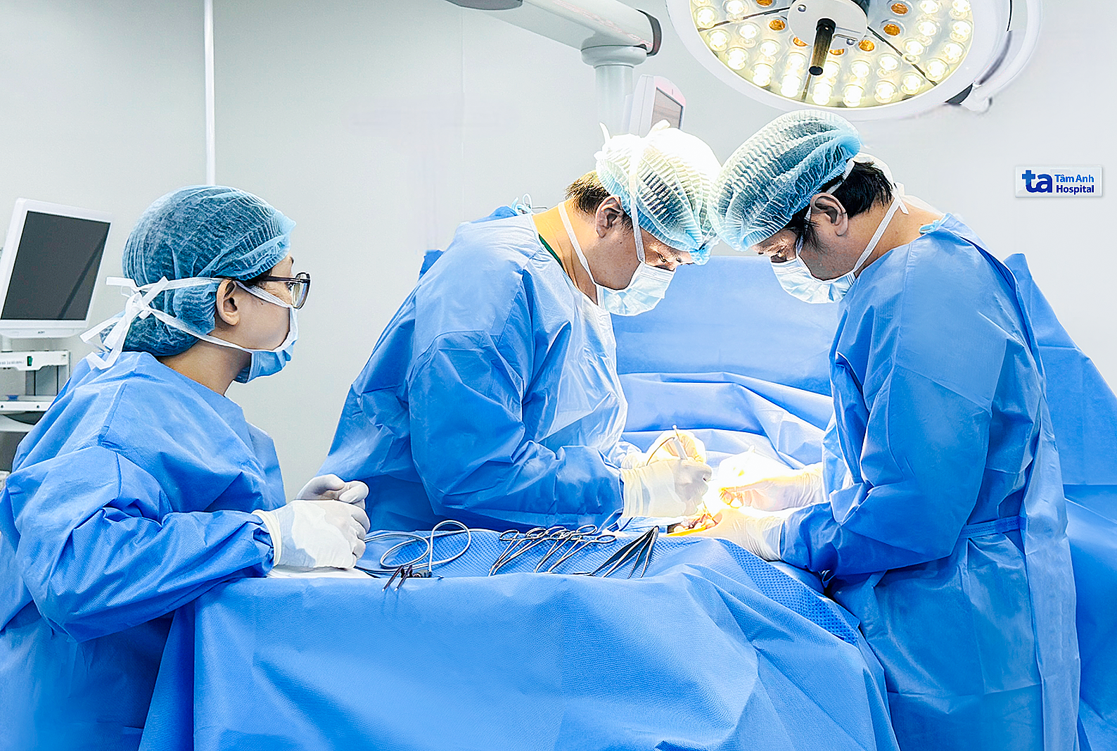 Doctor Thien (center) and the surgical team performing penile cancer surgery for a patient. Photo: Hoai Thuong |