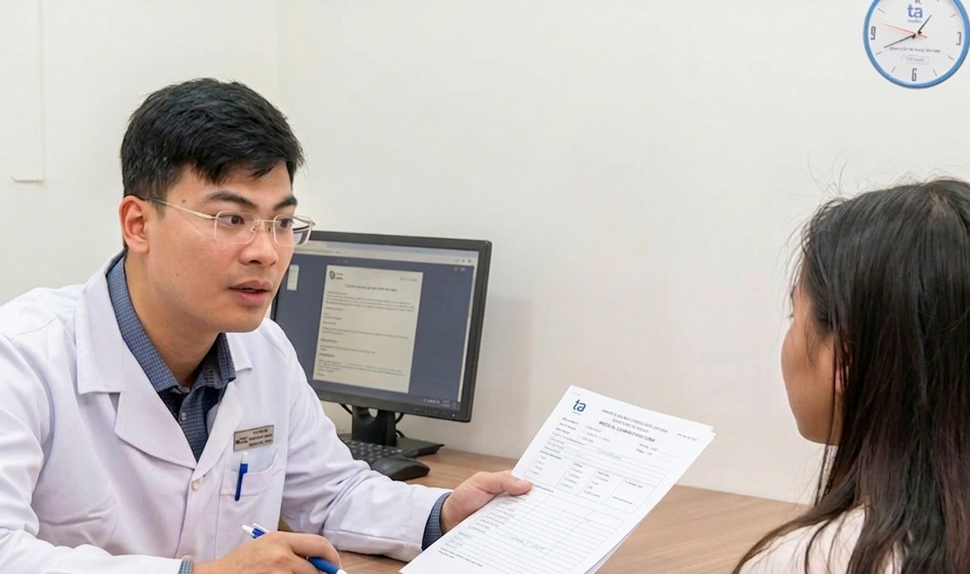 A nutritionist advises Minh Anh on a suitable meal plan. Photo: Tam Anh General Hospital |