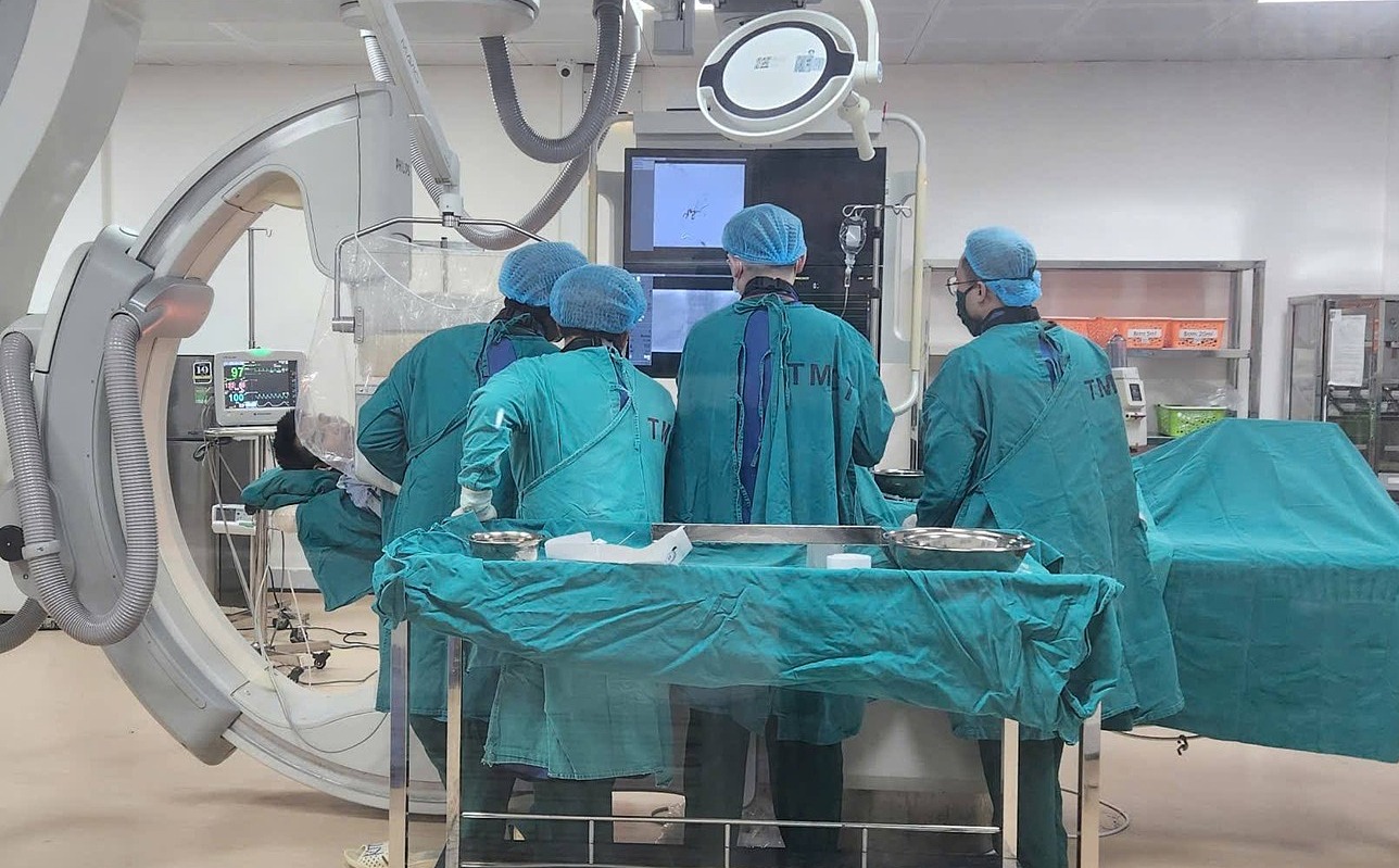 Doctors perform embolization for the patient. Photo: Hospital provided