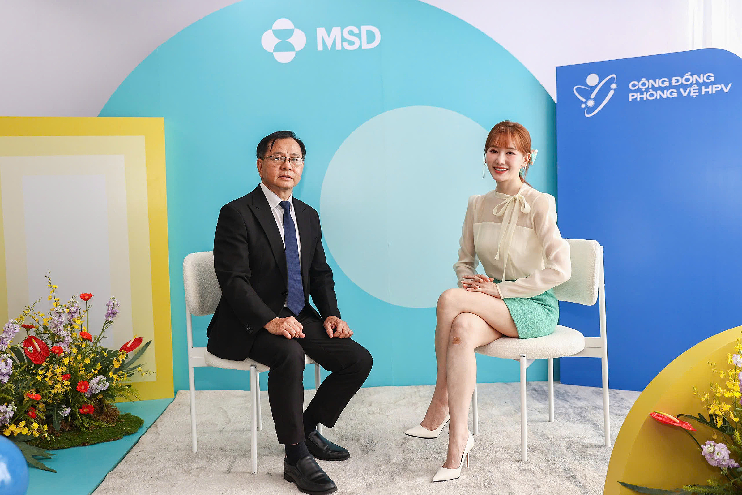 Singer and actress Hari Won and Dr. Phan Trong Giao, Medical Director of MSD, at an HPV awareness event in Ho Chi Minh City. Photo: Quynh Tran