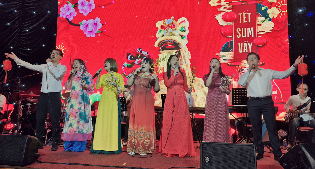 Medical professionals from various hospitals harmonize in the opening song, "Spring Reunion". Photo: Le Phuong