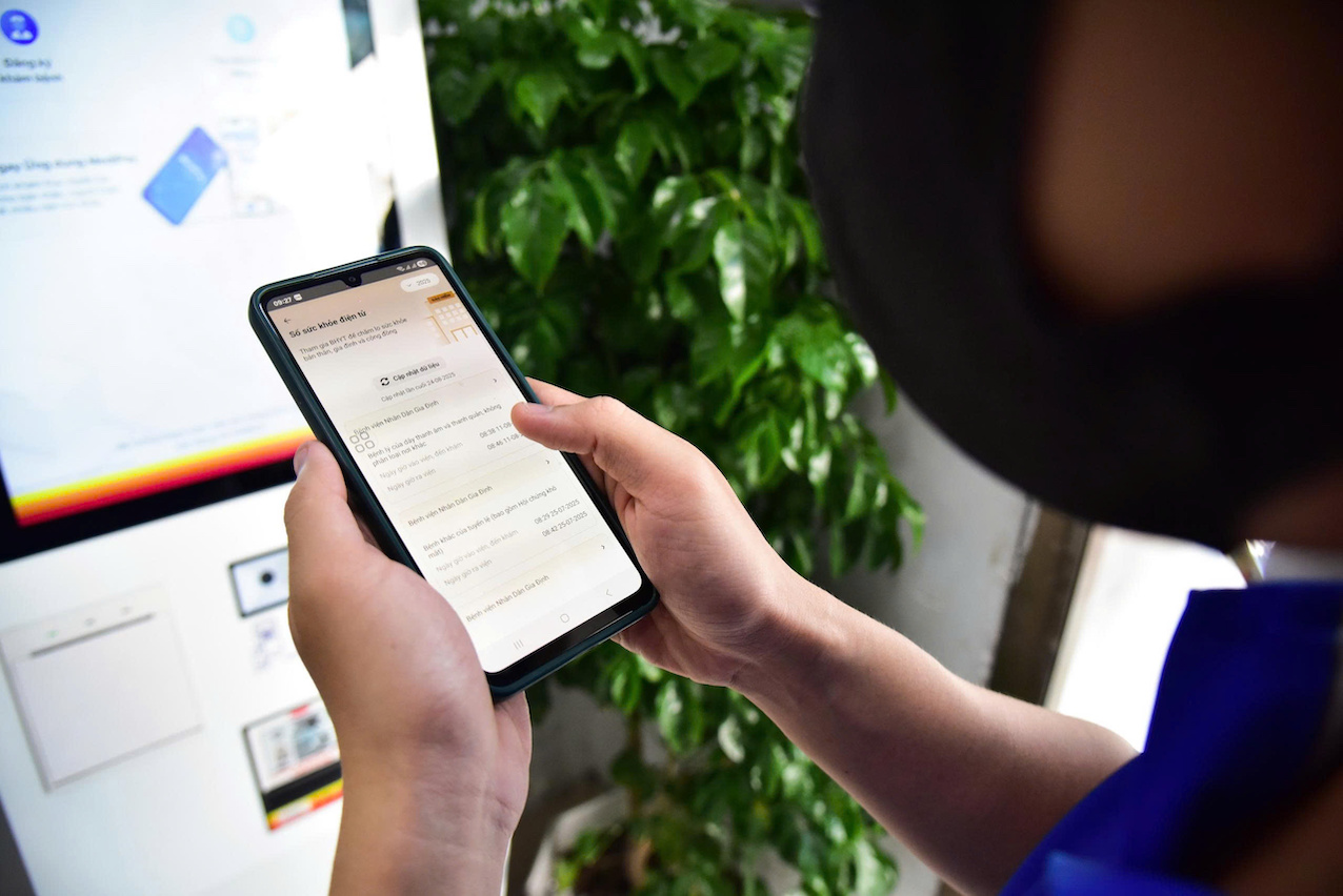 A patient views their electronic health record on their phone at Nhan Dan Gia Dinh Hospital. Photo: Hanh Hoang