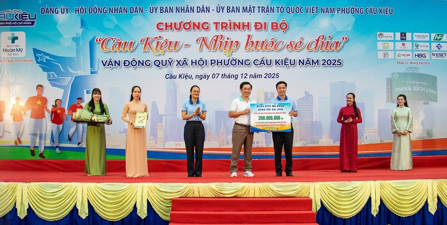 Each year, the Cau Kieu Ward People's Committee organizes social fundraising programs to support policy families, meritorious individuals, near-poor households, and residents facing difficult circumstances. The 2025 Cau Kieu Ward Social Fund walkathon is a key activity, attracting contributions from numerous agencies, businesses, and philanthropists, with the overarching goal of promoting the spirit of "Leaving no one behind."