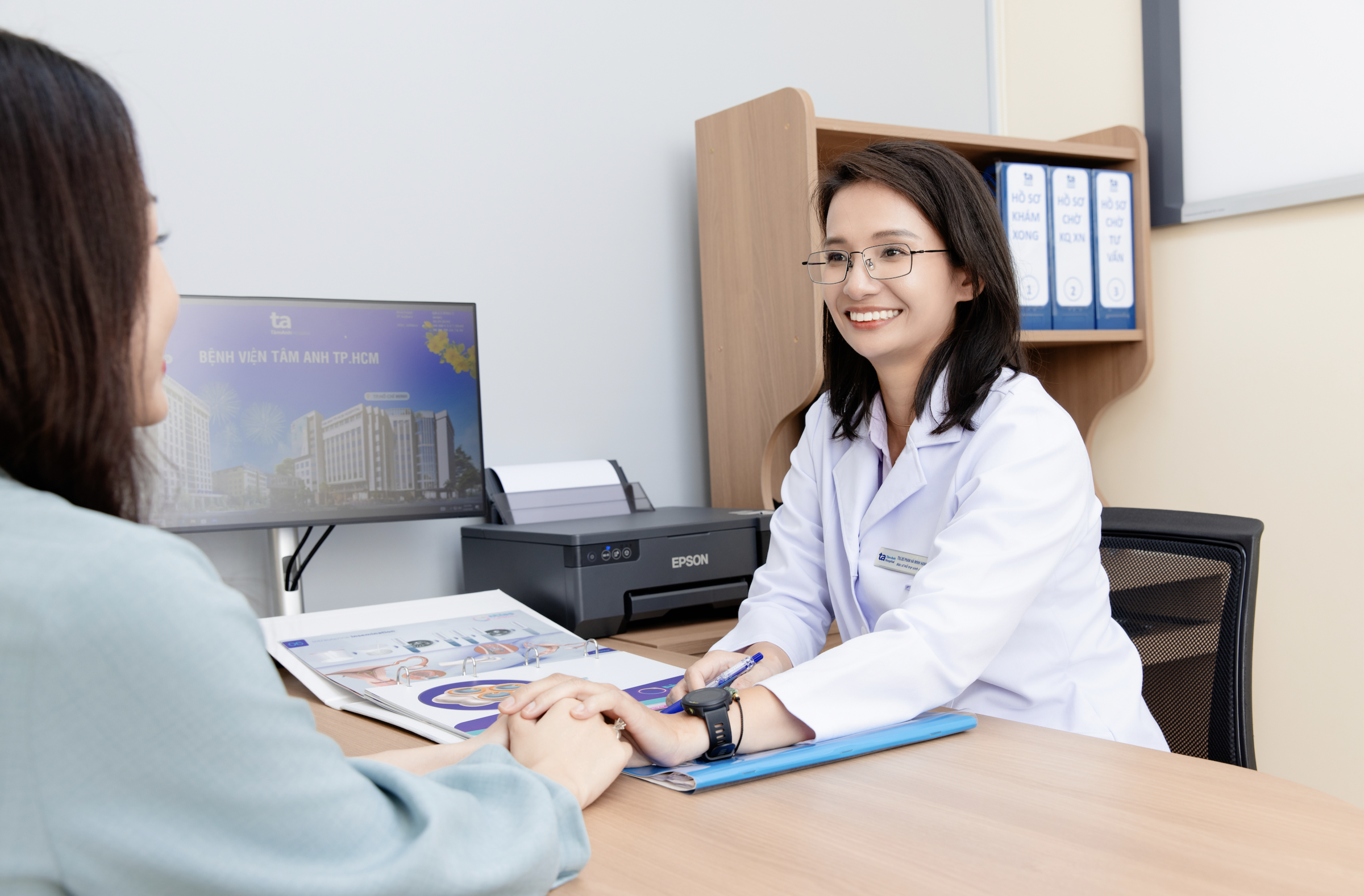 Dr. Phan Ha Minh Hanh consults with a patient. Illustrative photo: Nguyen Thang |