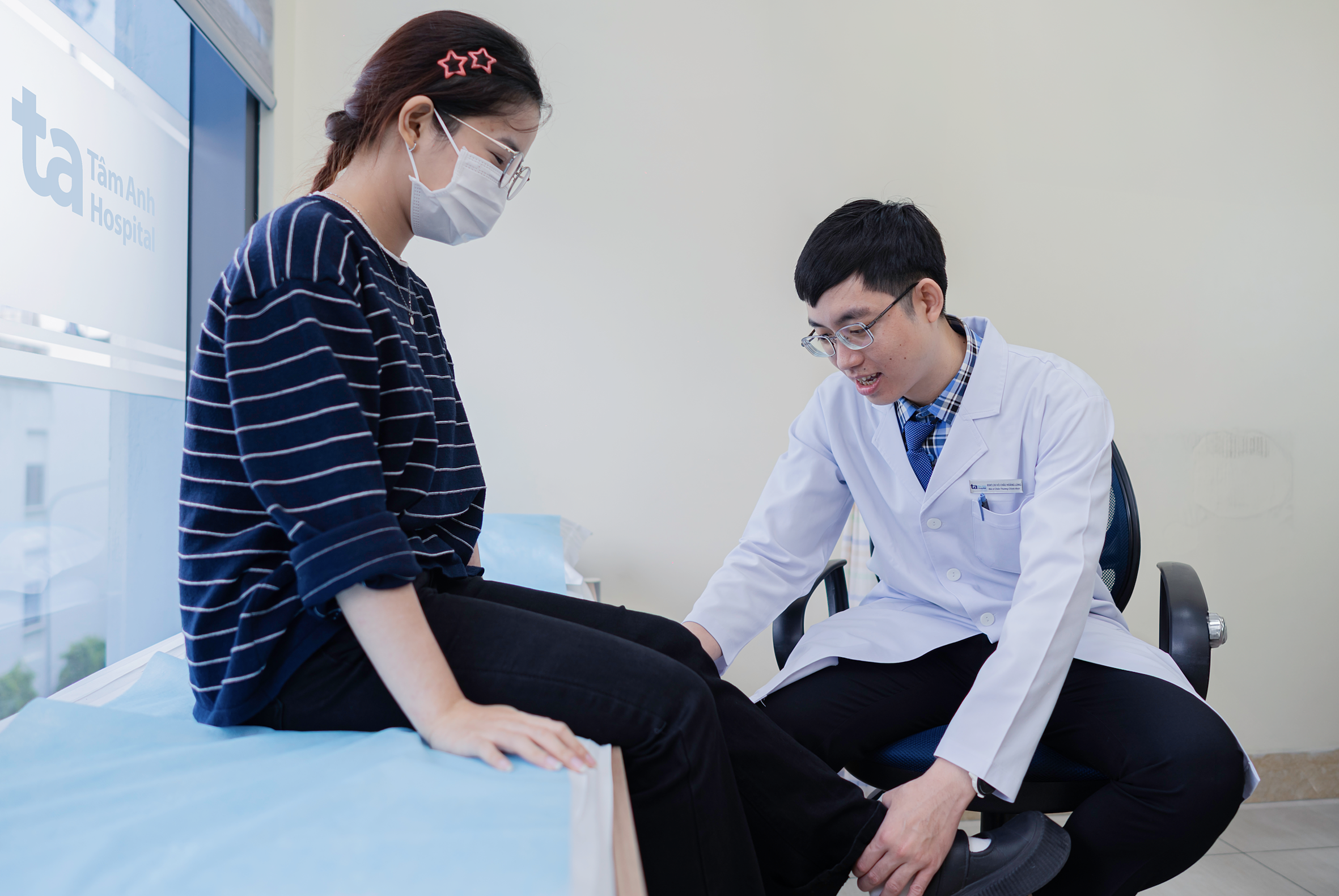 Dr. Long assesses a patient's ankle joint condition. Photo: Tam Anh General Hospital