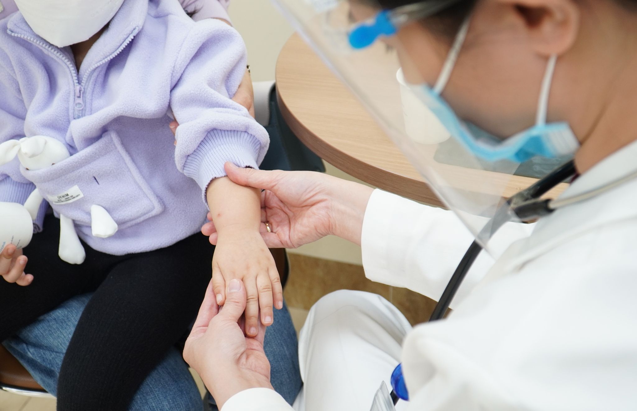 Doctors examining a child suspected of having hand, foot, and mouth disease. Photo: Tam Anh General Hospital |
