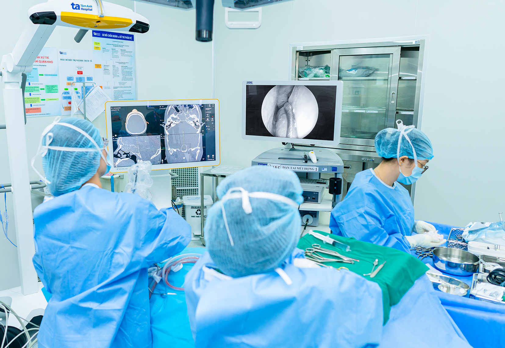 A surgeon operates on a patient with complicated sinusitis using an artificial intelligence-powered navigation system. Photo: Tam Anh General Hospital |