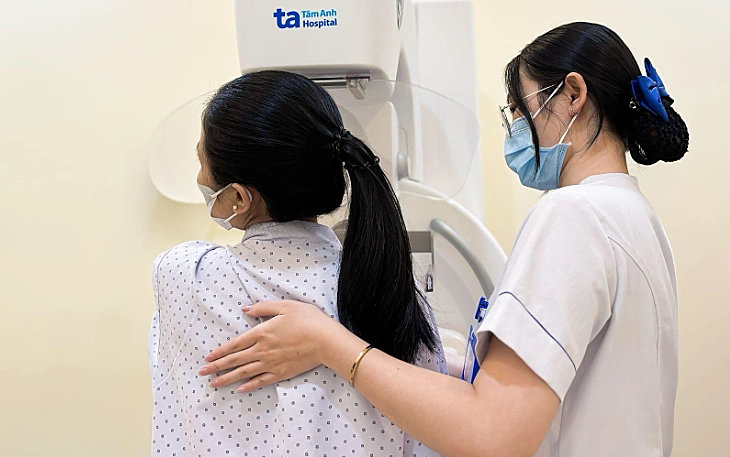 A patient undergoes mammography at Tam Anh General Hospital, TP HCM. Photo: Hospital provided |