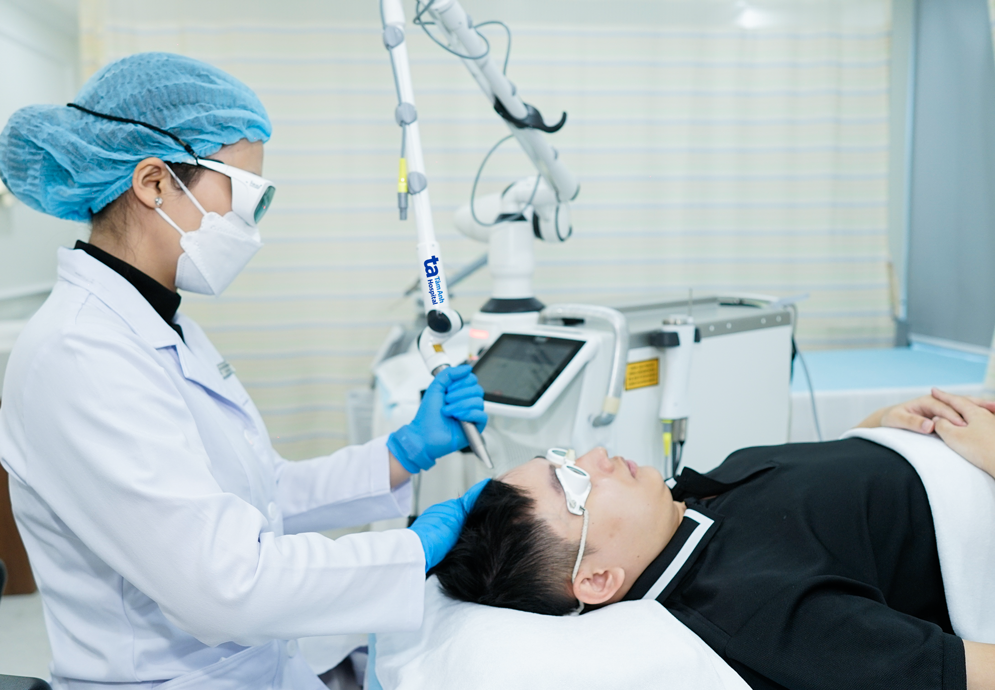 Doctor Tran uses a 6D laser to treat hyperpigmentation for patients. *Photo: Tam Anh General Hospital*