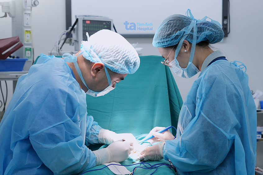 Doctor Tan performing a sterilization procedure for a patient. Photo: Tam Anh General Hospital |
