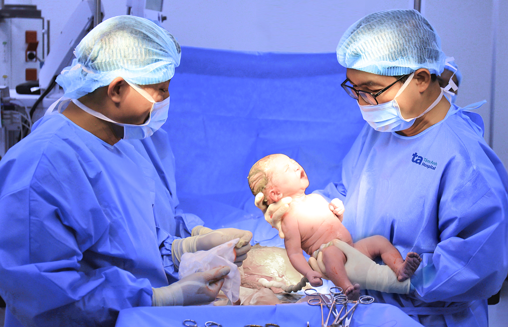 Master of Science, Doctor, Level II Specialist Le Thanh Hung, Deputy Head of Obstetrics Department, Obstetrics and Gynecology Center, Tam Anh General Hospital Ho Chi Minh City (right), performs a cesarean section for Nuong. Photo: Nguyet Nhi |