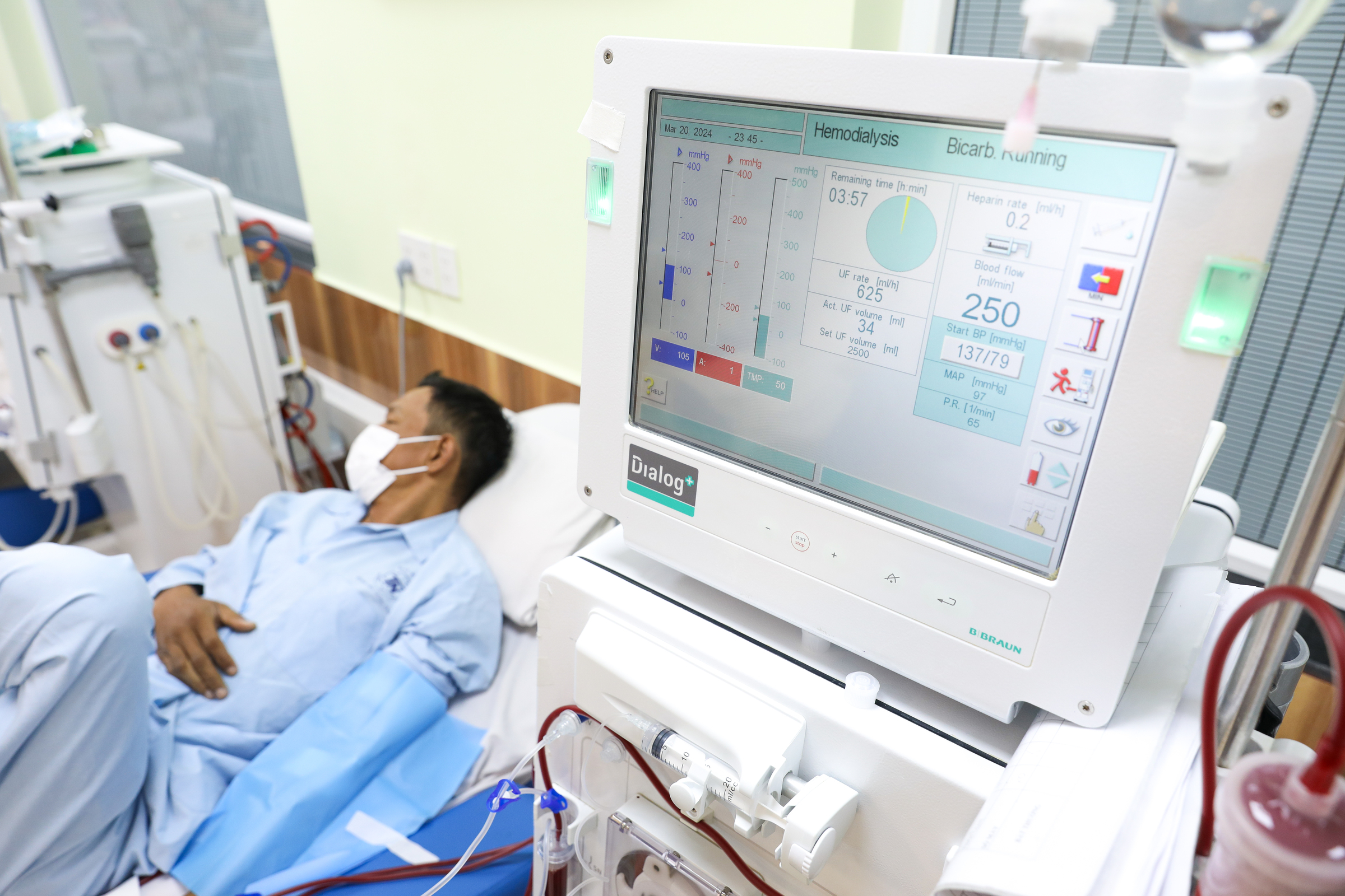 A patient undergoes dialysis three times a week at Thong Nhat Hospital. Photo: Phung Tien |