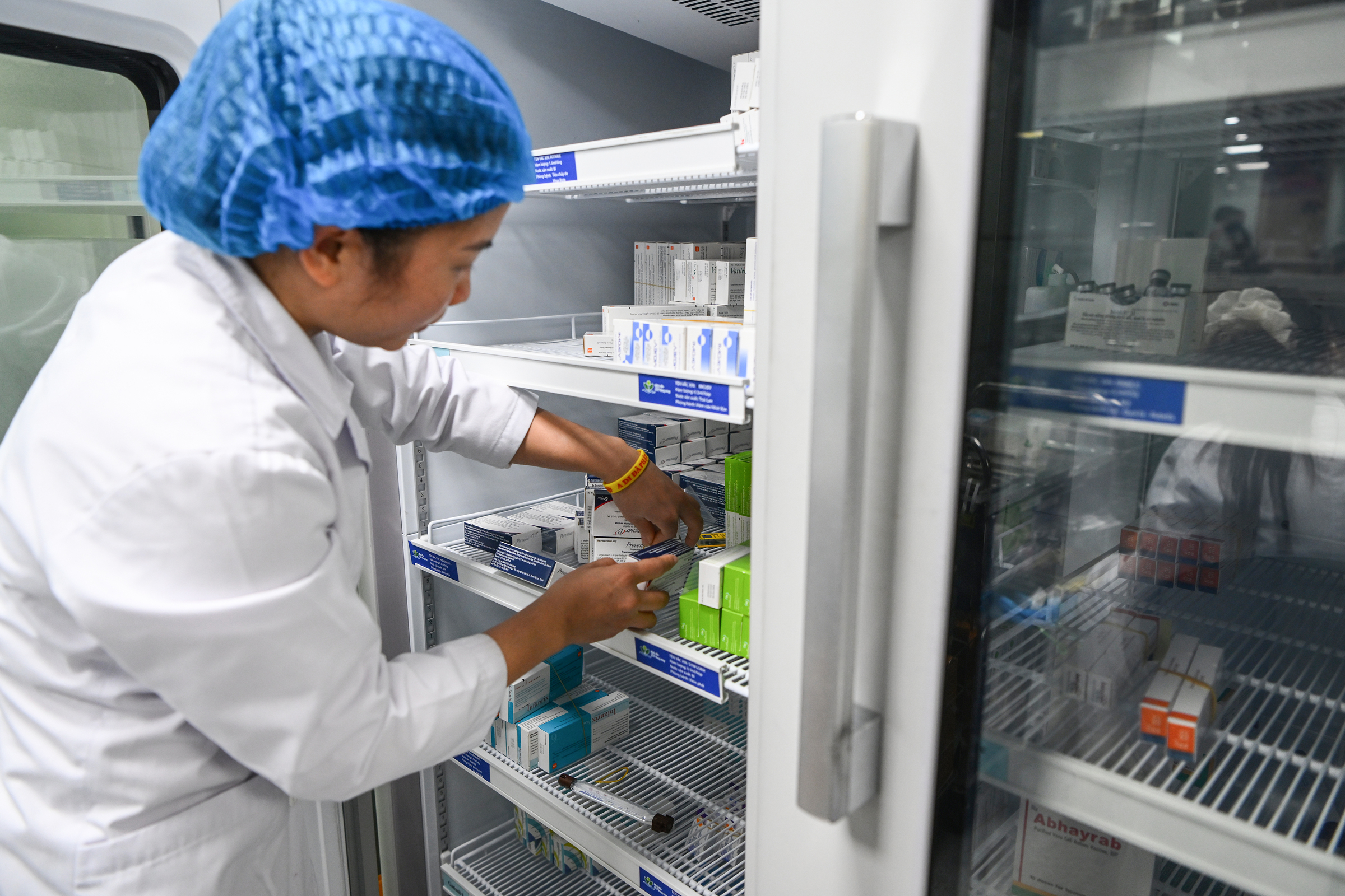 A doctor checks an influenza vaccine at the National Children's Hospital. Photo: Giang Huy. |